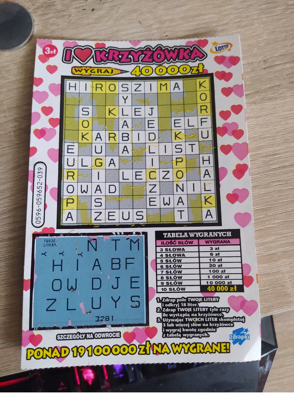 Na 5 krzyżówek wydrapałem 1x3 i 1x20. Co ciekawe 20-tka ponownie na numerze 090.