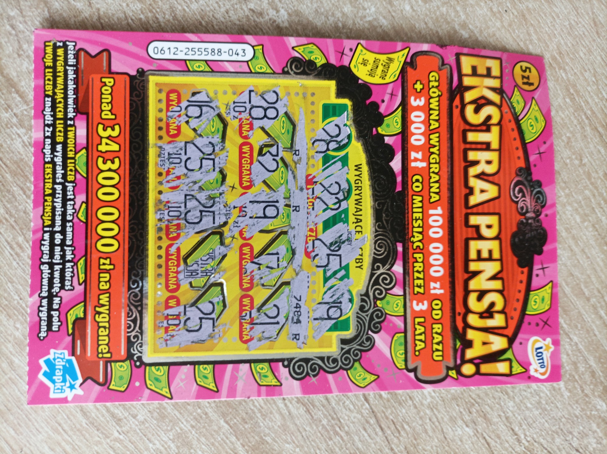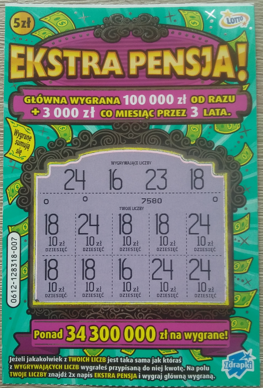 Stało się, czekałem na to 10 lat, 3 miesiące i 10 dni. Pierwszy raz w życiu mam 100zł w losie za 5zł! Wygrana wpadła przy jednej sztuce