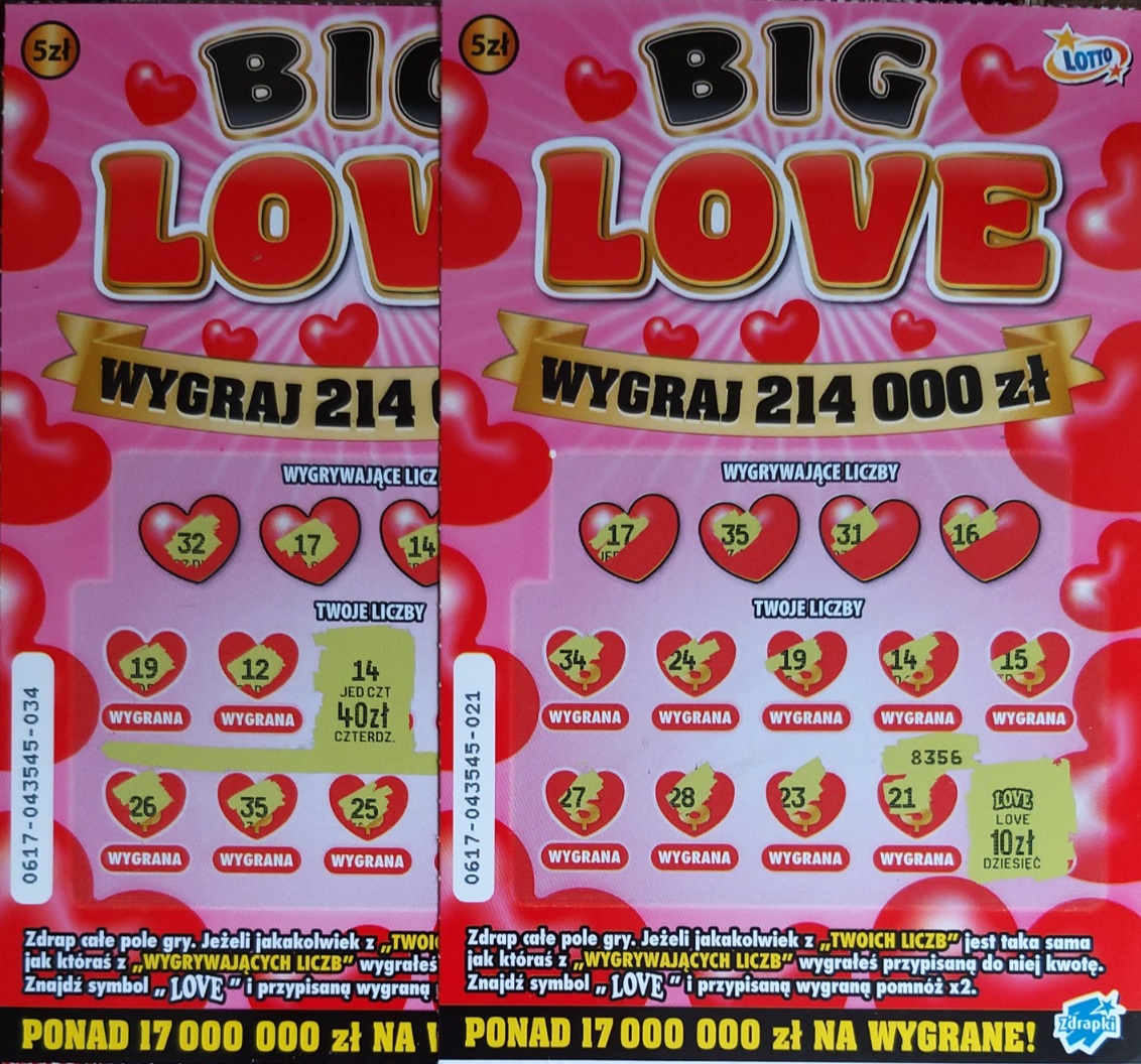i nie ma to jak z ciekawości drapnąć poboczne liczby i " trafić" dwie główne