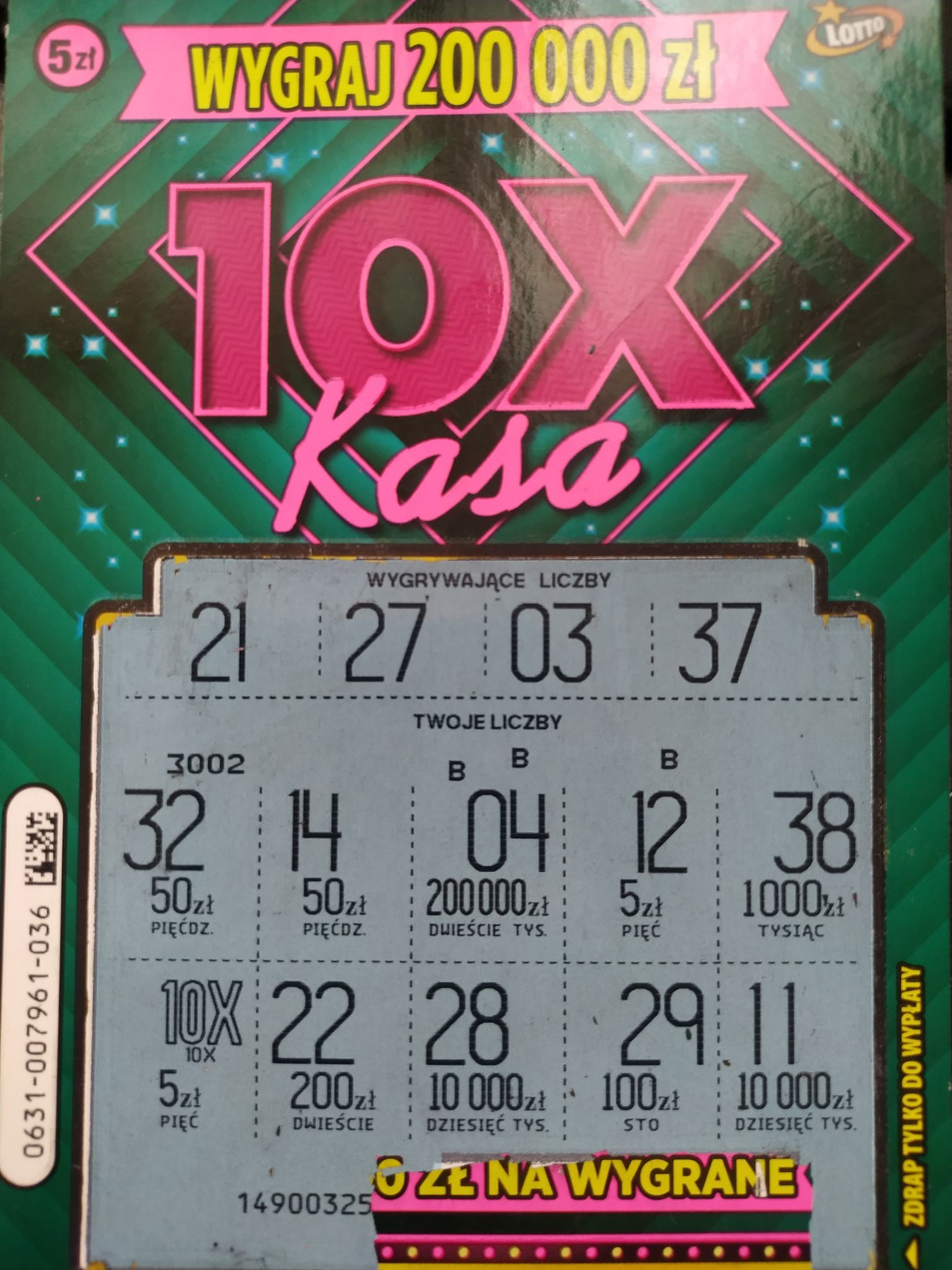 Co do pozostałych, to Czarny diament się rzadko zdarza, ale wszystko i tak ze spalonego przedziału. Fast cach wydaje się, że jest sporo i co najważniejsze dobry przedział, także oprócz 10 x Kasa to na nim się skupię. Szmaragdowej na razie nie brałem pod uwagę, ale popatrzę co tam w moim mieście jest za przedział. ŚO jest na pewno w dwóch punktach, które odwiedziłem w ostatnim czasie, ale jednak cena zdrapki powoduje, że będę brał po sztuce raz na jakiś czas, albo poczekam jeszcze trochę i jak nie zejdzie główna to zrobię jakieś większe zakupy.