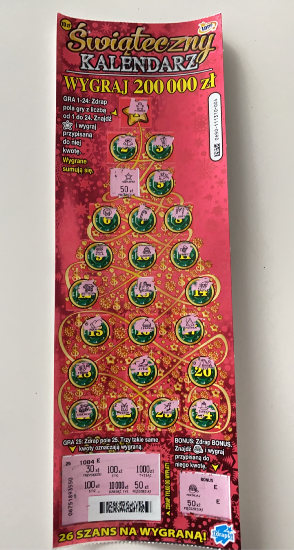 Kupiłam kilkanaście w różnych miejscach, wpadło 100 zł, 50 zł, 2x30 zł, 20 zł, kilkax10zł i z 10 pustaków.