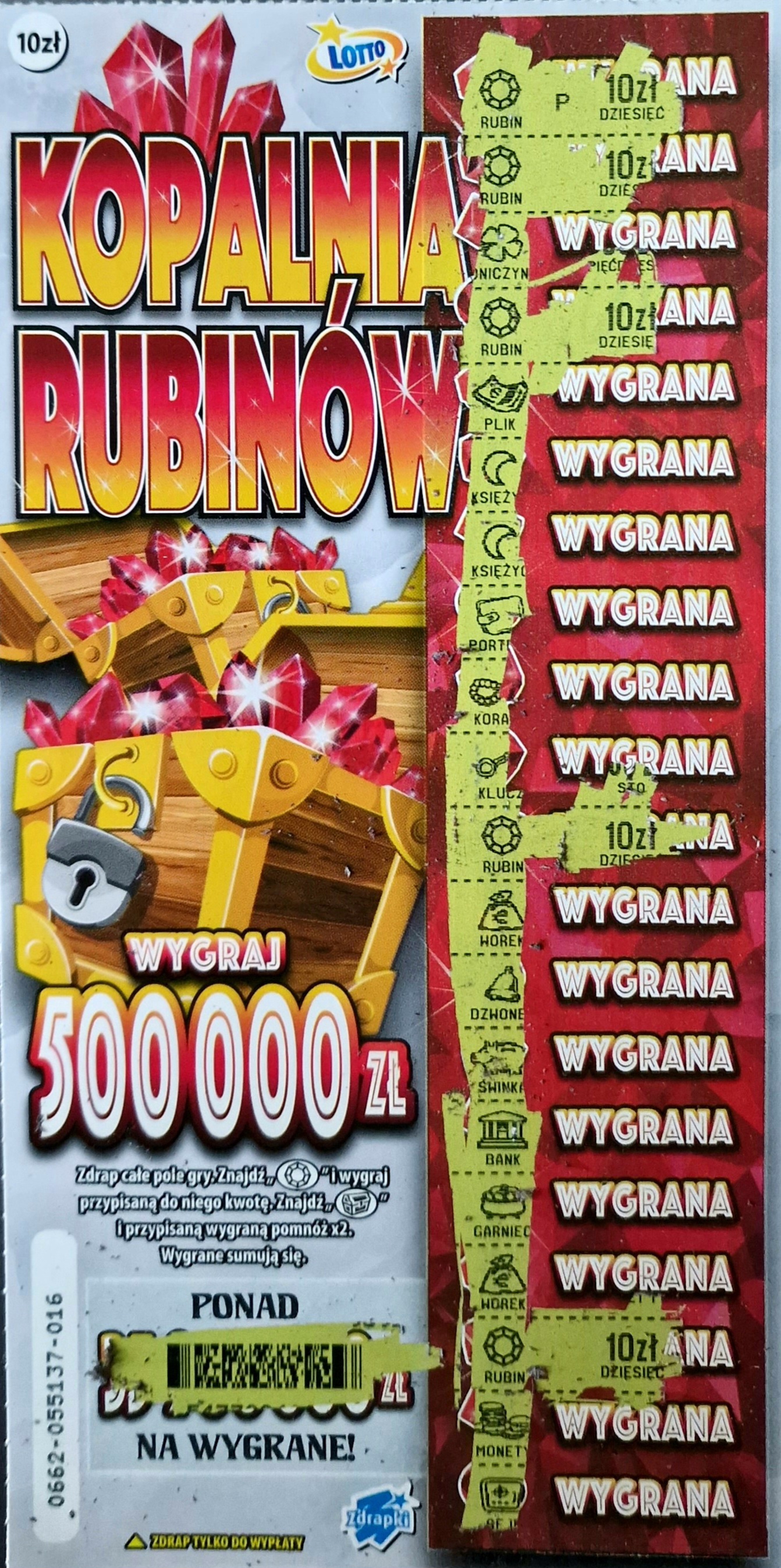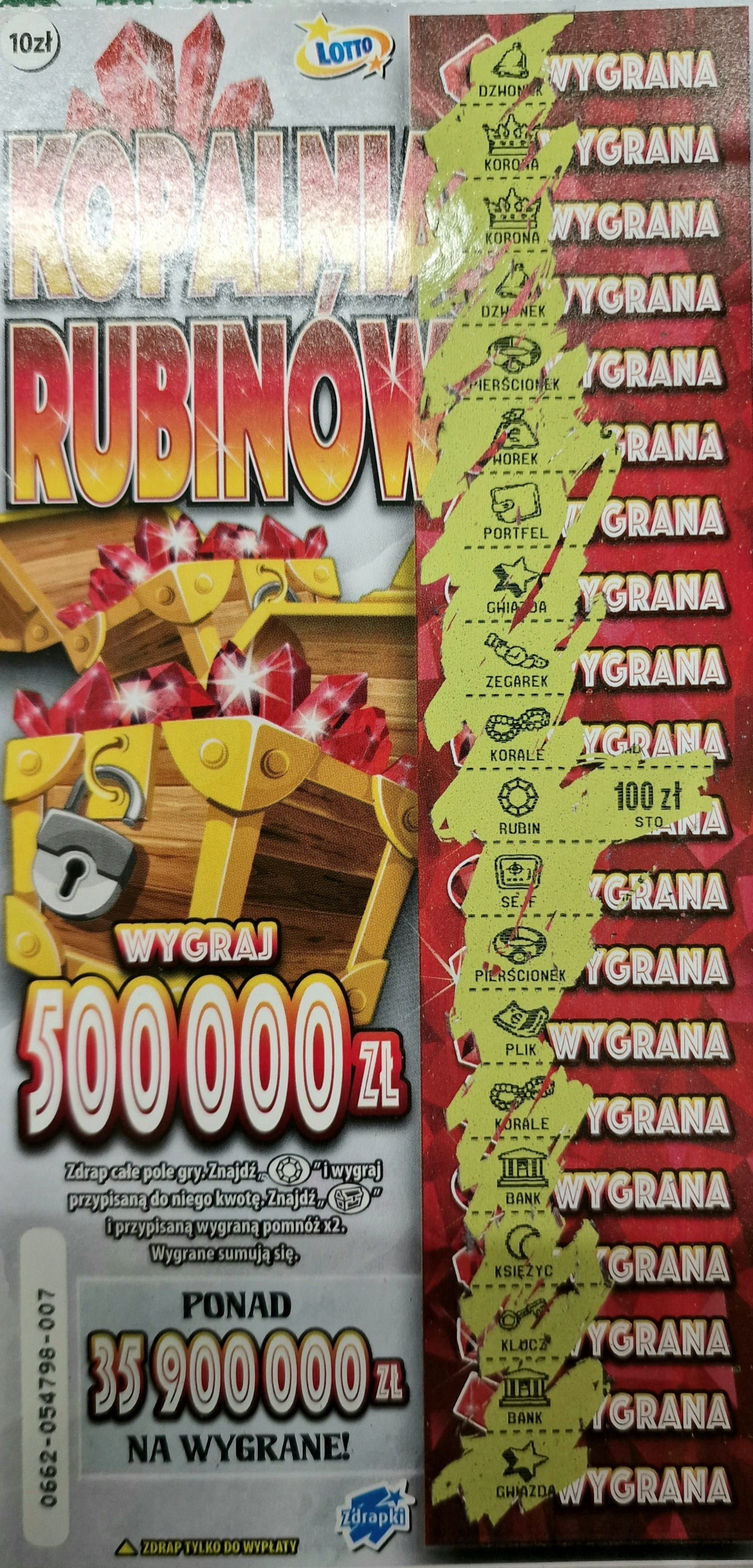 W piątek wzięłam jedną sztukę w Żabce z nr 022 i pod rubinem siedziało 30 zł