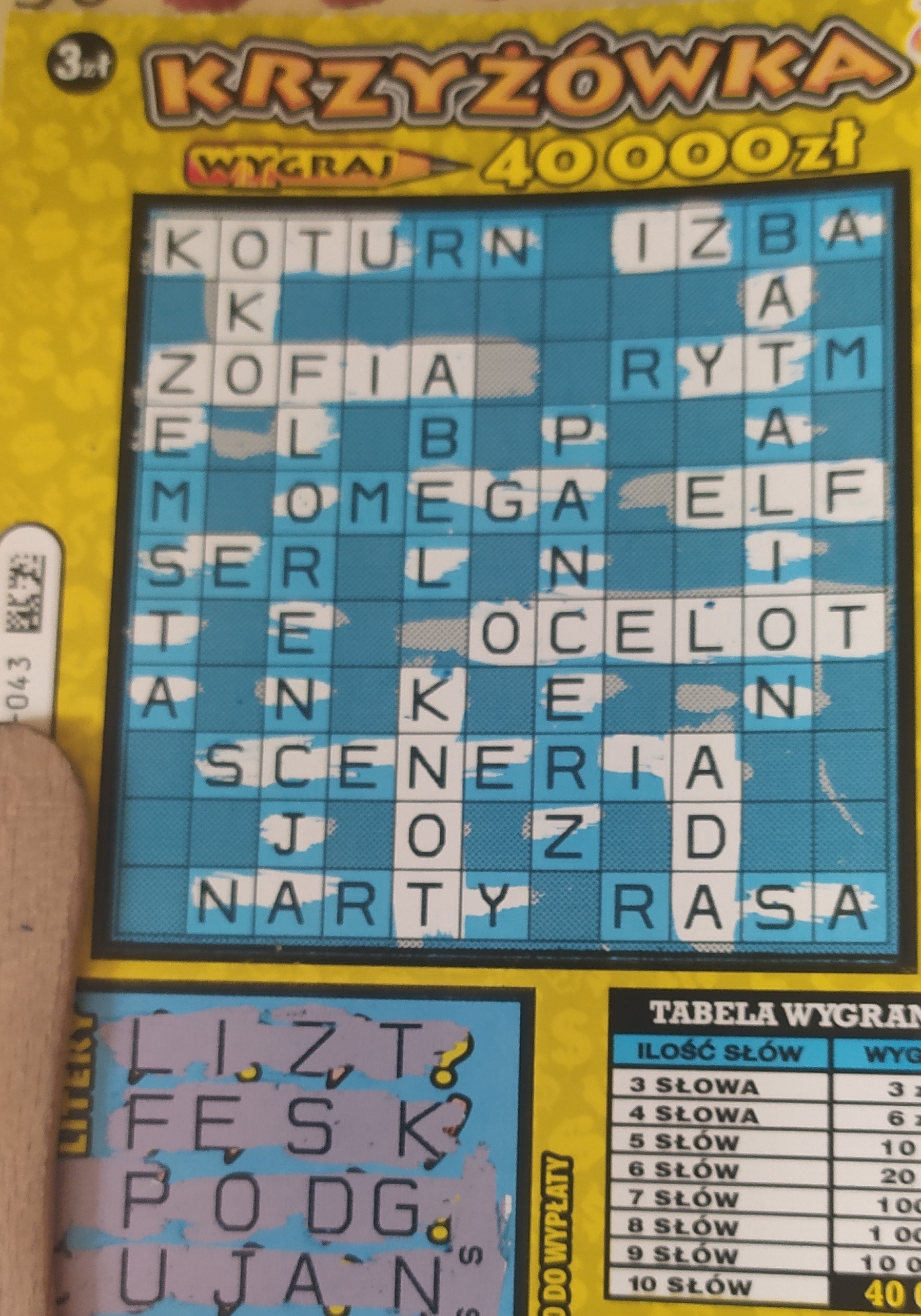 Jeśli kiedyś miałoby mi się coś lepszego trafić to chciałbym właśnie w krzyżówce takie 10000 lub 40000 z dużej sympatii do tej zdrapki