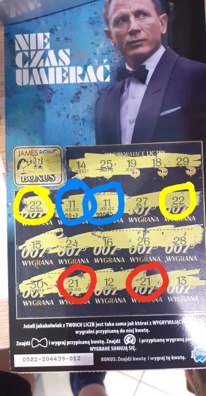 Na setki zdrapek, ktore zdrapalem cos takiego jeszcze mi sie nie trafilo, bond 007 okrada klienta z 3 miejsc w ktorych mogl wygrac haha