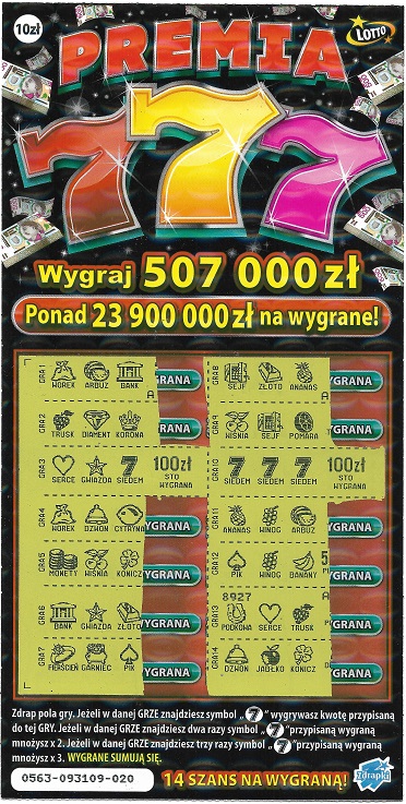 graty farciarzugrzybek pisze: ↑19 mar 2021, 20:48Jako że jutro zamykają galerie to pomyślałem sobie, a pójdę i wymienię tam jeszcze owe 15zł z "na tropie kasy". Byłem jakieś 20 minut przed zamknięciem punktu. Najpierw wybrałem 1szt Na tropie kasy (pustak) i myślę, że coś by jeszcze wypadało dobrać w ramach tych 10zł. Wybór padł na Premię 777, której jeszcze nie drapałem ani razu w tej edycji, to wezmę na spróbowanie. Odkryły się w sumie 4 siódemki i już się cieszyłem, że 50zł wleci, a tu taka bomba, 400zł ! ! !
