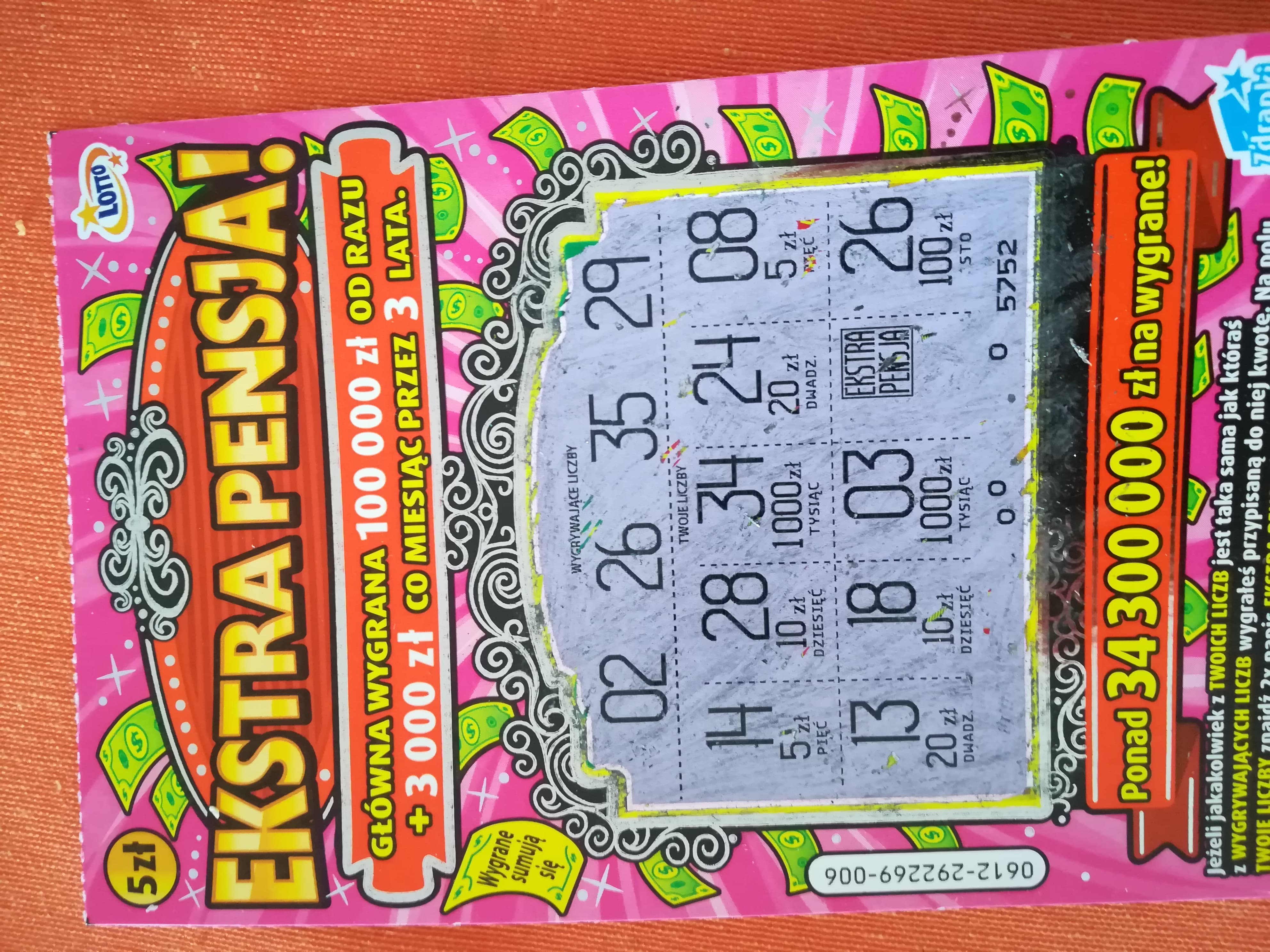 Hej, dziś wpadł w końcu Stefanos : D To zawsze była moja ulubiona zdrapka za 5 zł, najczęściej w niej spośród jakichkolwiek zdrapek trafiałem 50, ale 100 nie było nigdy jak dotąd. Cieszy mnie to bo mam do niej sentyment, a patrząc na tabele w innych mimo warstwy czasem ją skubałem - choć generalnie ostatnio spowolniłem ze zdrapkami i gram dużo spokojniej. Przy jednej sztuce w spożywczaku, wzięta od niechcenia.