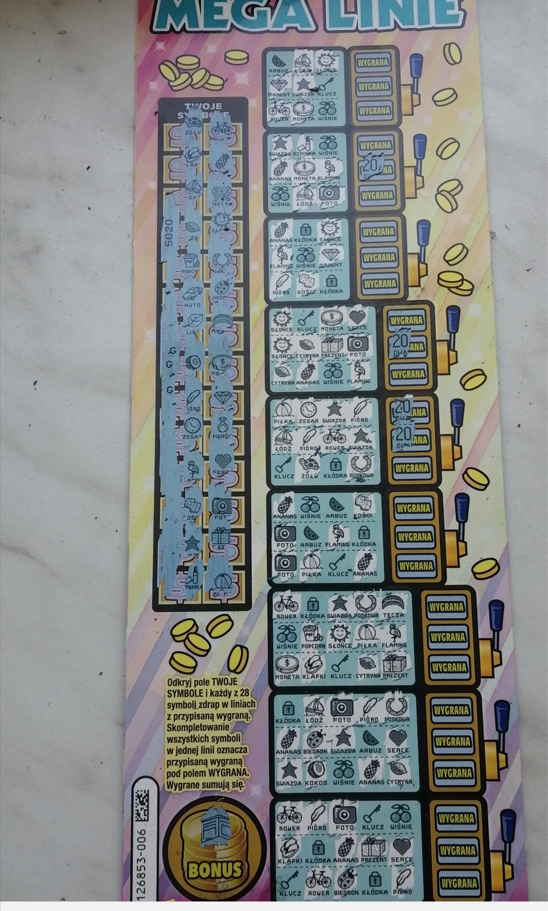 Owszem, na pewno nie będę kupował takich jak super milion, pensje bankiera itp. które dotychczas były chlebem powszednim. Mega linie to pierwszy los za 20zł gdzie przynajmniej dla mnie jest w jakimś stopniu akceptowalna liczba nagród pośrednich, mam tu na myśli 1600 po 540zł oraz 100 po 4100zł. Mimo że losy po 20zł są w ofercie od 215 roku to dopiero mega linie przekroczyły pewną barierę, wniosły coś innego. Raz że inna formuła niż wygrywające liczby, dwa że w końcu inaczej ułożono proporcje wygranych pośrednich, a po trzecie że tak dobrze mi w niej idzie to próbuję dalej, może właśnie wleci któraś z nagród o której napisałem.