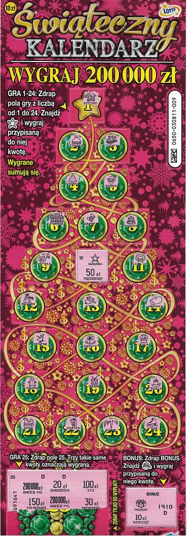 Punkt 3: nr 006 - 30zł w bardzo ciekawym układzie: 10zł pod gwiazdką (22) + 20zł na polu z kwotami (pierwszy raz mam wygraną na polu z kwotami :!: )
