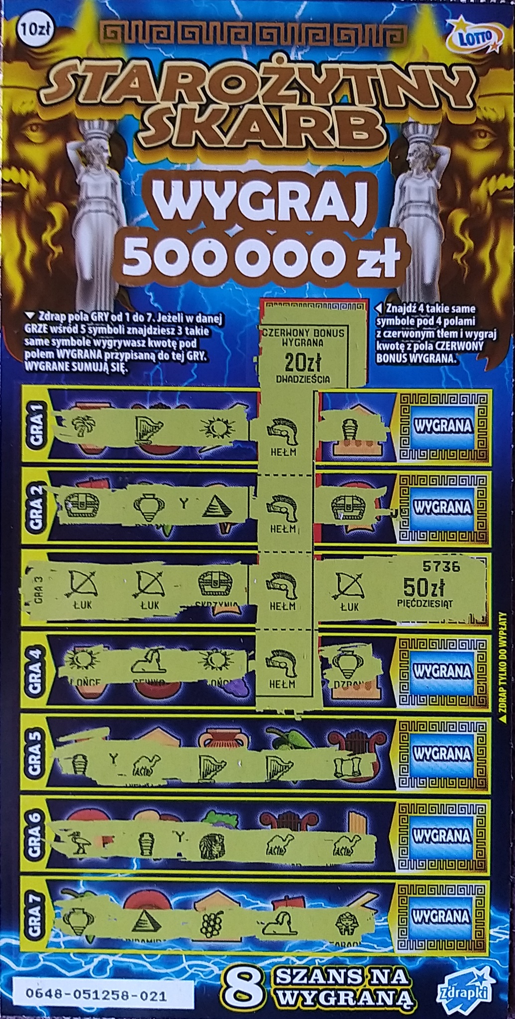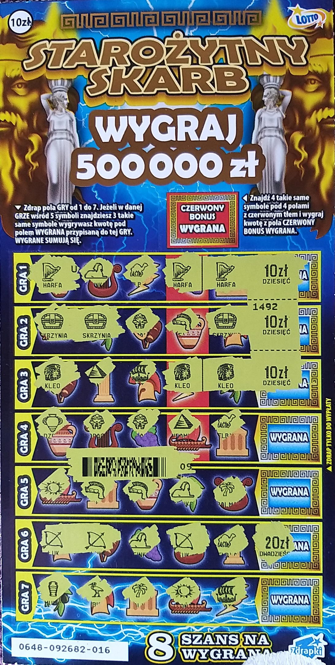 Mam wrażenie, że w tej zdrapce to i 50 zł jest warte uwagi. No chyba, że tylko mnie tak słabo w niej idzie. Miałem wielkie oczekiwania, bo fajna formuła i szata graficzna ale co nie kupię to pustak. Denerwujące jest, że nawet zwrot nie wpadnie...