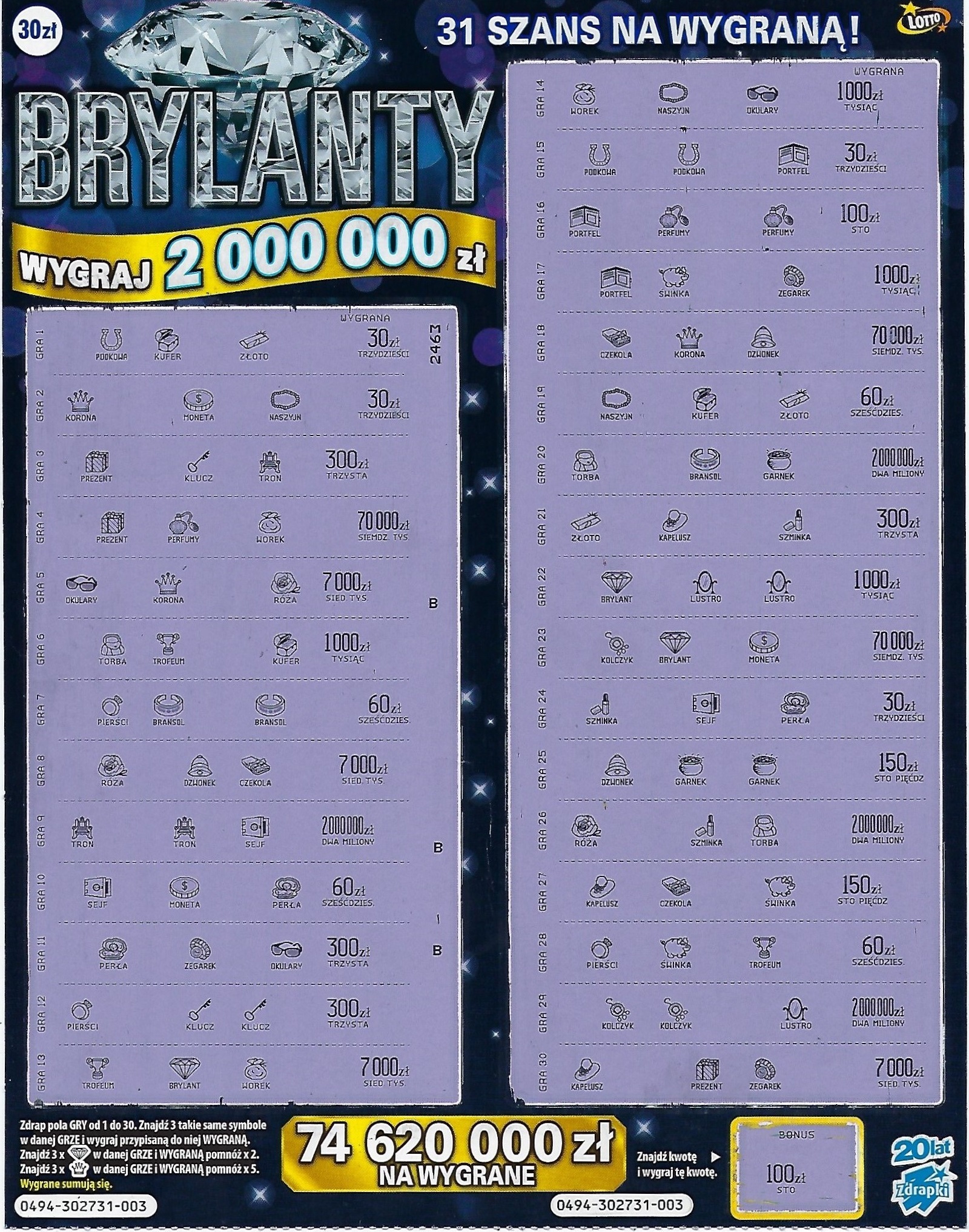 Gratytereska1975 pisze: ↑20 lut 2020, 19:22Ja dziś wzięłam jedną sztukę z niepełnej już paczki, ale opłaciło się. W wybranym przeze mnie nr 003 było 100 zł w bonusie![]()