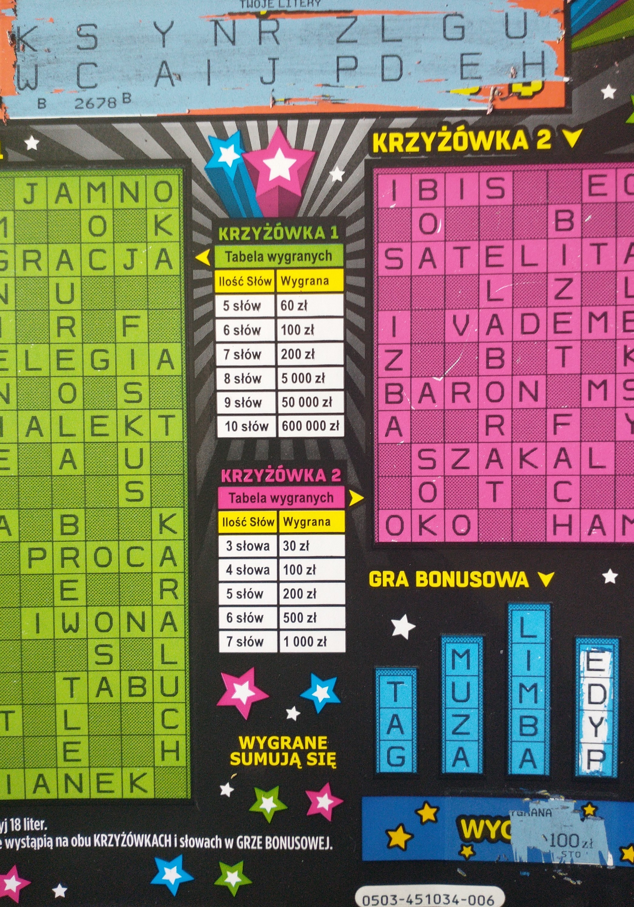 Kupiłam dzisiaj dwie paczki, u nas jest sporo tych zdrapek. Z 20 sztuk wygrane 7.