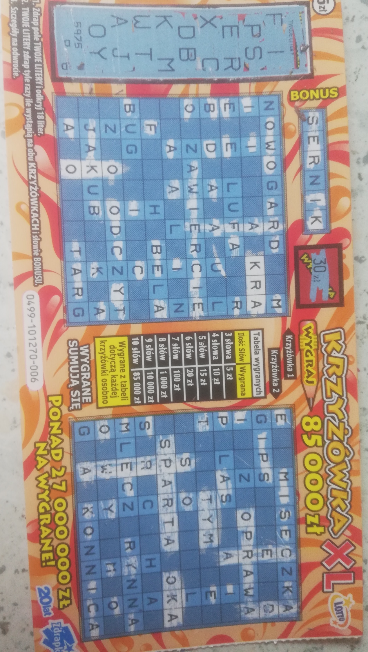 Kupiłam tylko 1 sztukę z nowej paczki nr 50 i 20 zł wygrałam. Zdjęcia zapomniałam zrobić.