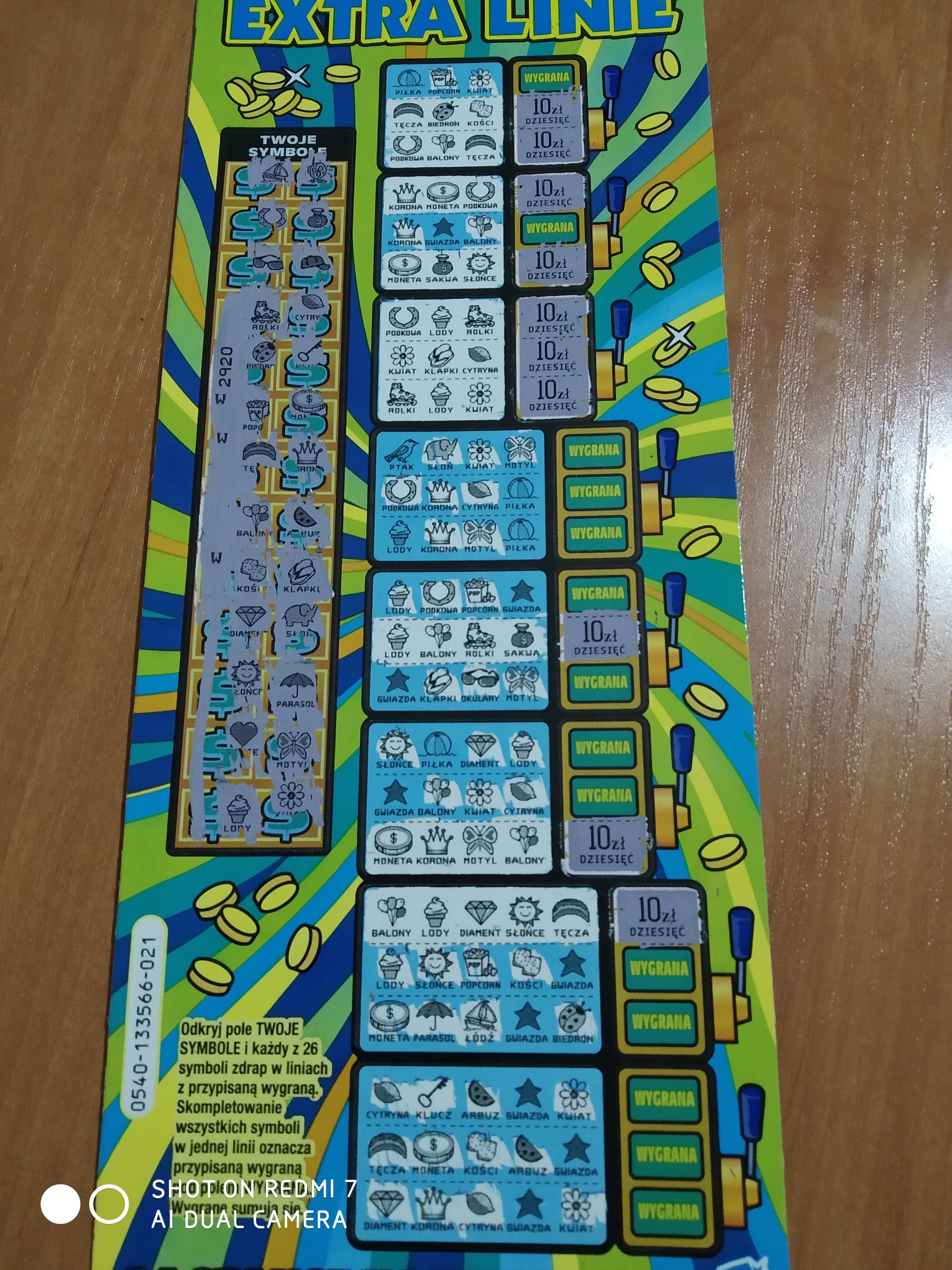 Ta zdrapka jest gówniana dla mnie. Wczoraj na 5 sztuk śmieszne 10 zł, a dziś wszystkie 4 puste.