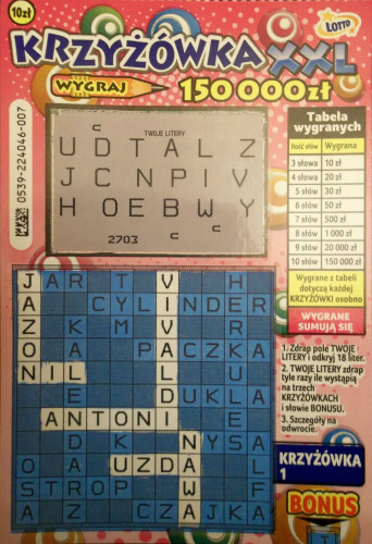 Po paru dniach przerwy od zdrapek dzisiaj kupiłam dwie sztuki, Krzyżówkę XXL i Extra linię za 10 zł. Linia była pusta, a w krzyżówce było 100 zł.