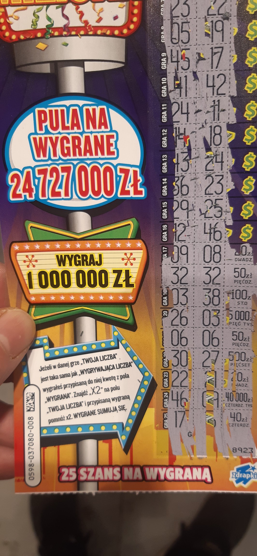 no tak, i pamiętając grudzień 2018 kiedy to kupiłem paczke zdrapli MPM o nr 47000, a parę dni później szczęśliwie ze sterty paczek wybrałem paczke nr 46999 i zdrapke nr 7 gdzie była głowna wygrana - to teraz postanowiłem kupić 2 paczki bo też mają takie równe podobne nr