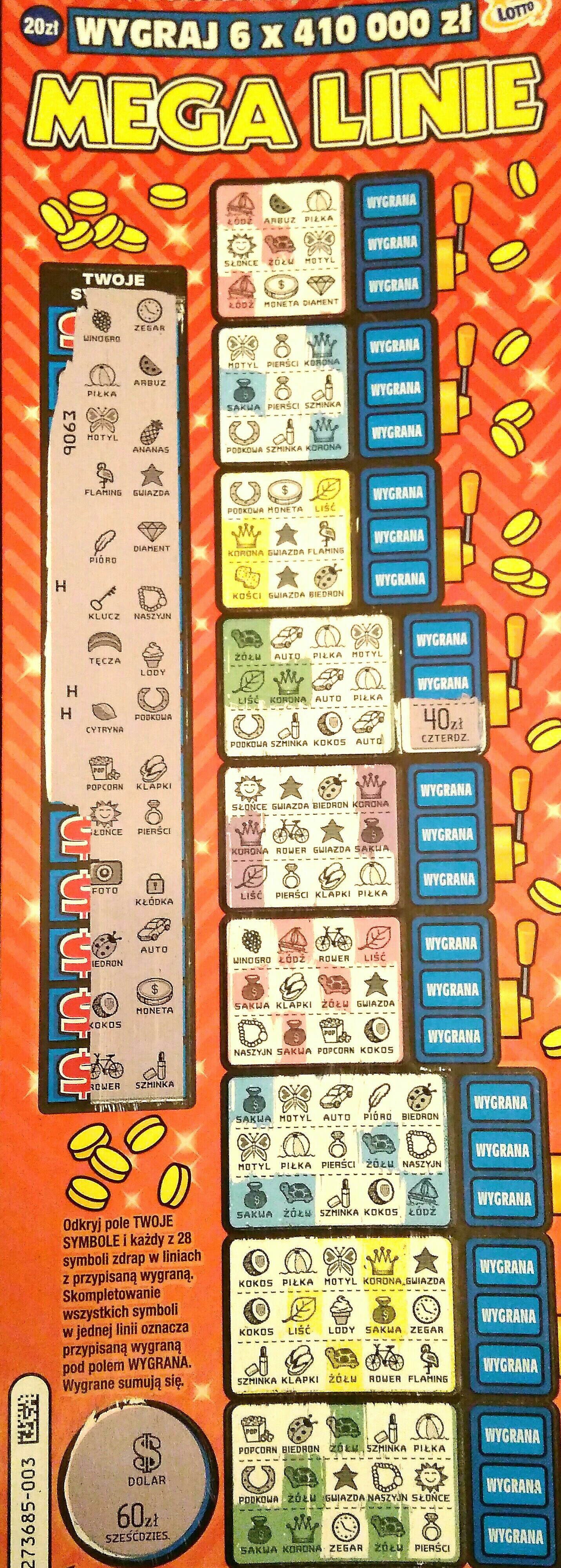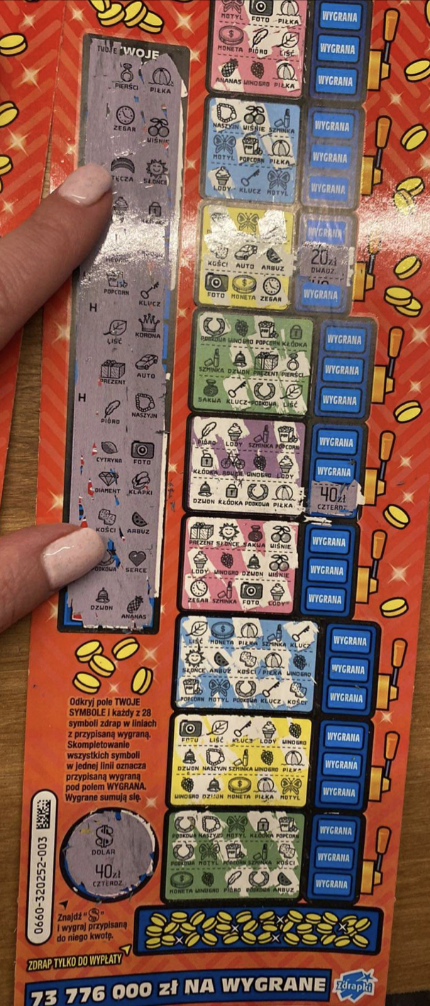 Z braku EL wzięłam dziś jedną sztukę ze zdrapkomatu z nr 008 i siadło 100 zł
