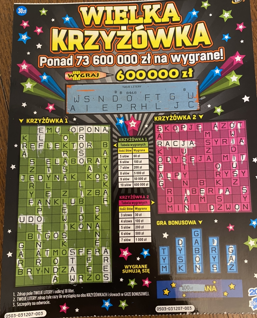 Jeśli sprawy się tak mają, to ja kończę ze zdrapkami w ogóle...albo przynajmniej z WK.