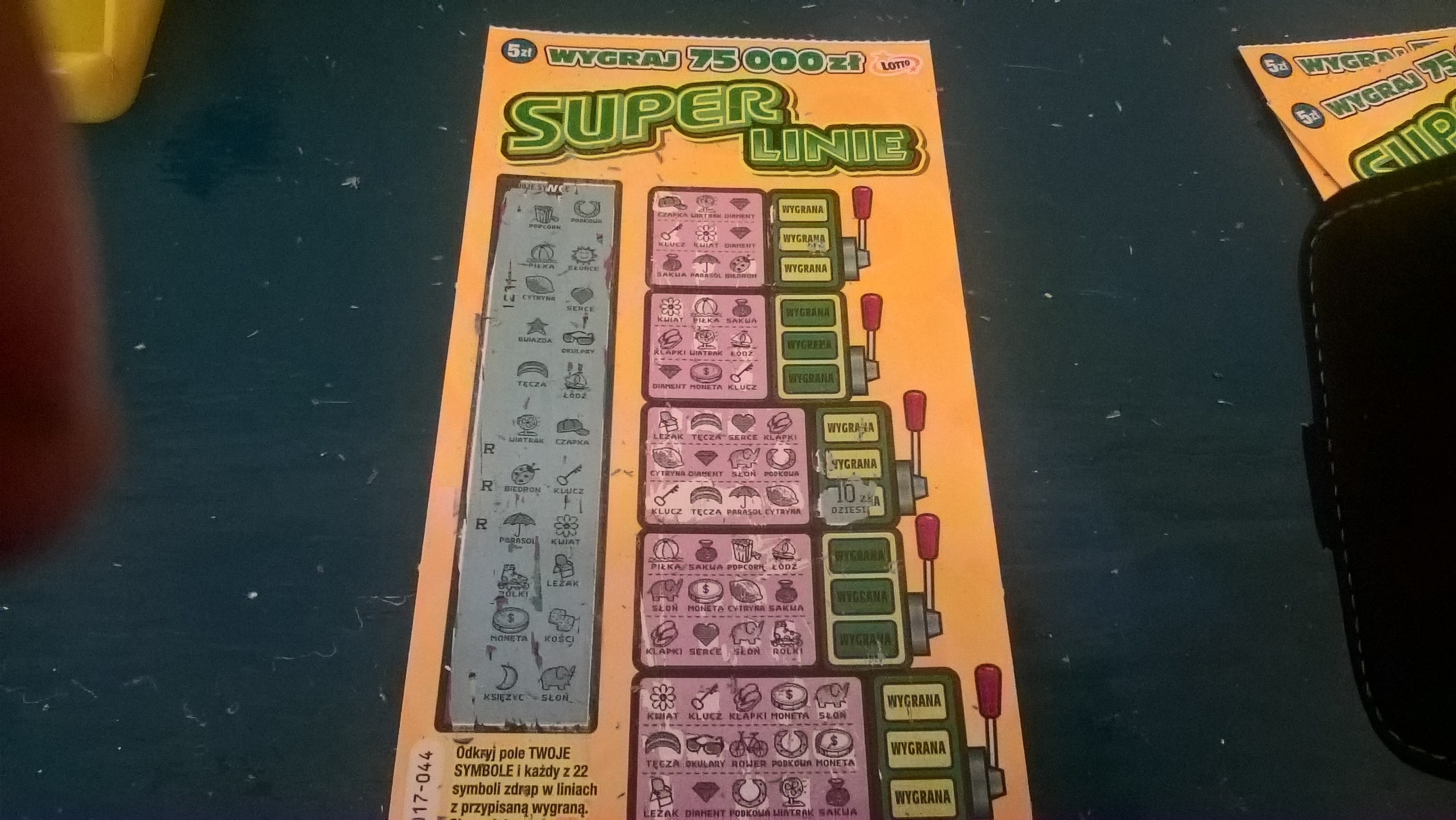 Dziś po południu z tego samego zdrapkomatu wzięłam też jedną z nr 043 i wpadło 10 zł