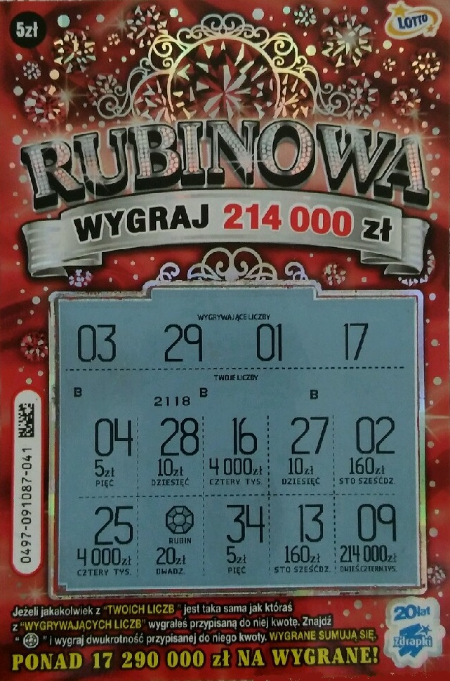 kupiłam dziś dwie zdrapki, w 009 5 zł a w 041 zupełnie niespodziewanie 40 zł