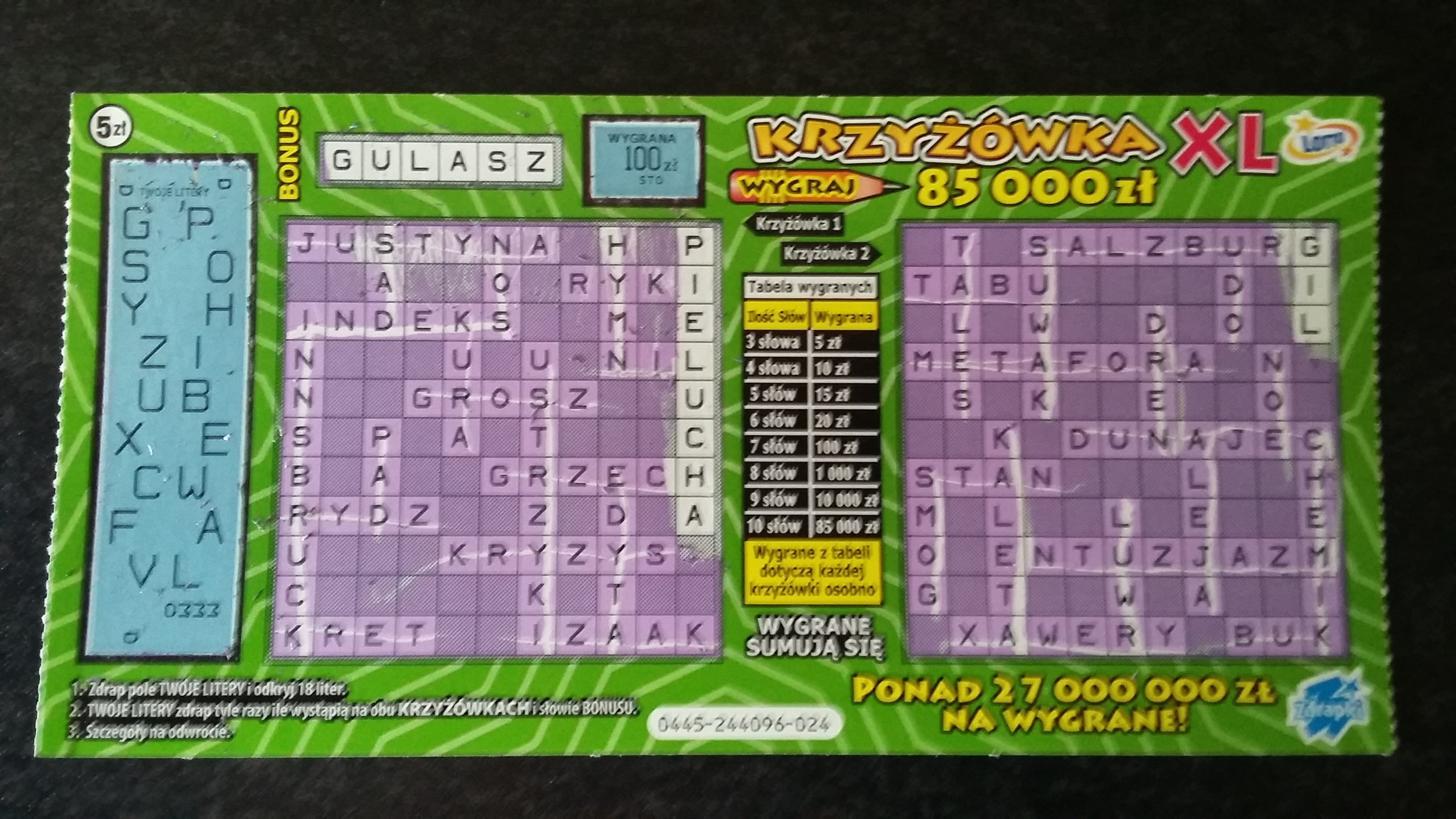 Na 3 kupione 2 wygrane nr.21 bonus SZACHY 5zł i po 3 słowa w krzyżówkach a w drugiej nr.50 5zł pewnie dalej zapoluje bo jest cała paczka.