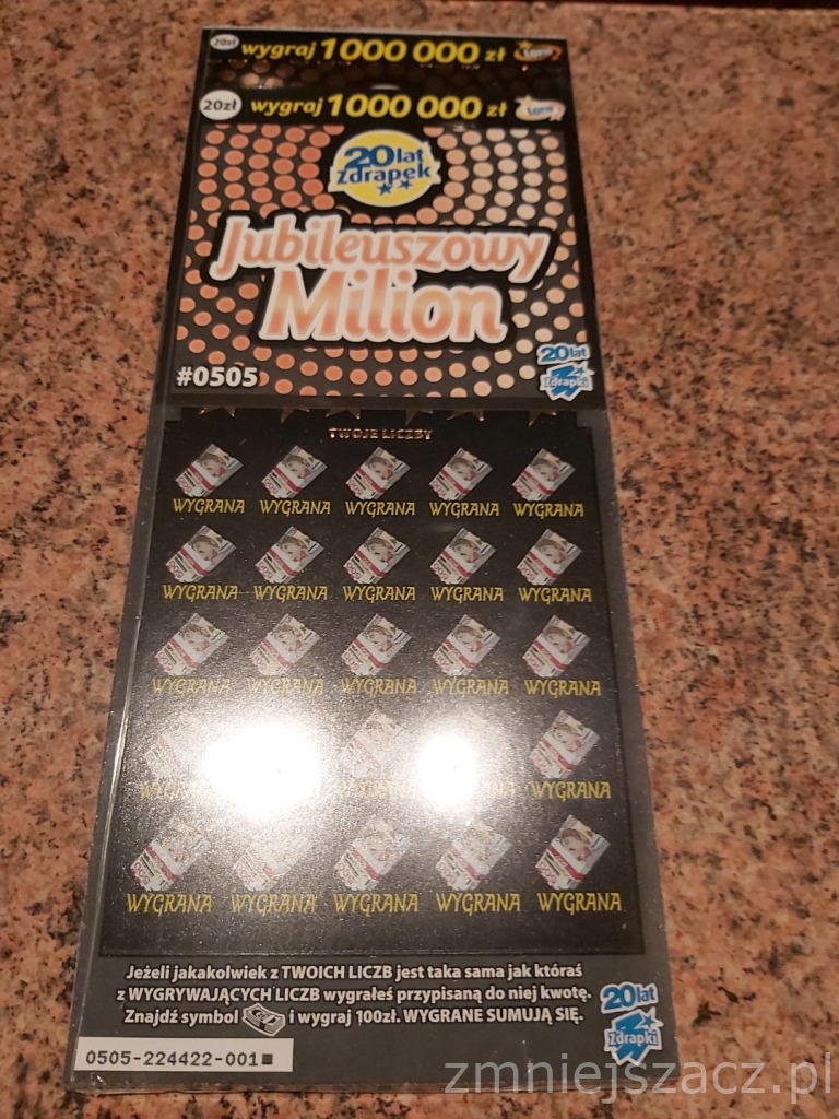 Mój jubileuszowy Janusz z nr 5 i pusty. Wiadomo, tak to u mnie ze zdrapkami droższymi niż 5-10 zł. No ale jeszcze dwie sztuki skubnę, zwykle po 1, a najdalej 3 szt. odpuszczam.