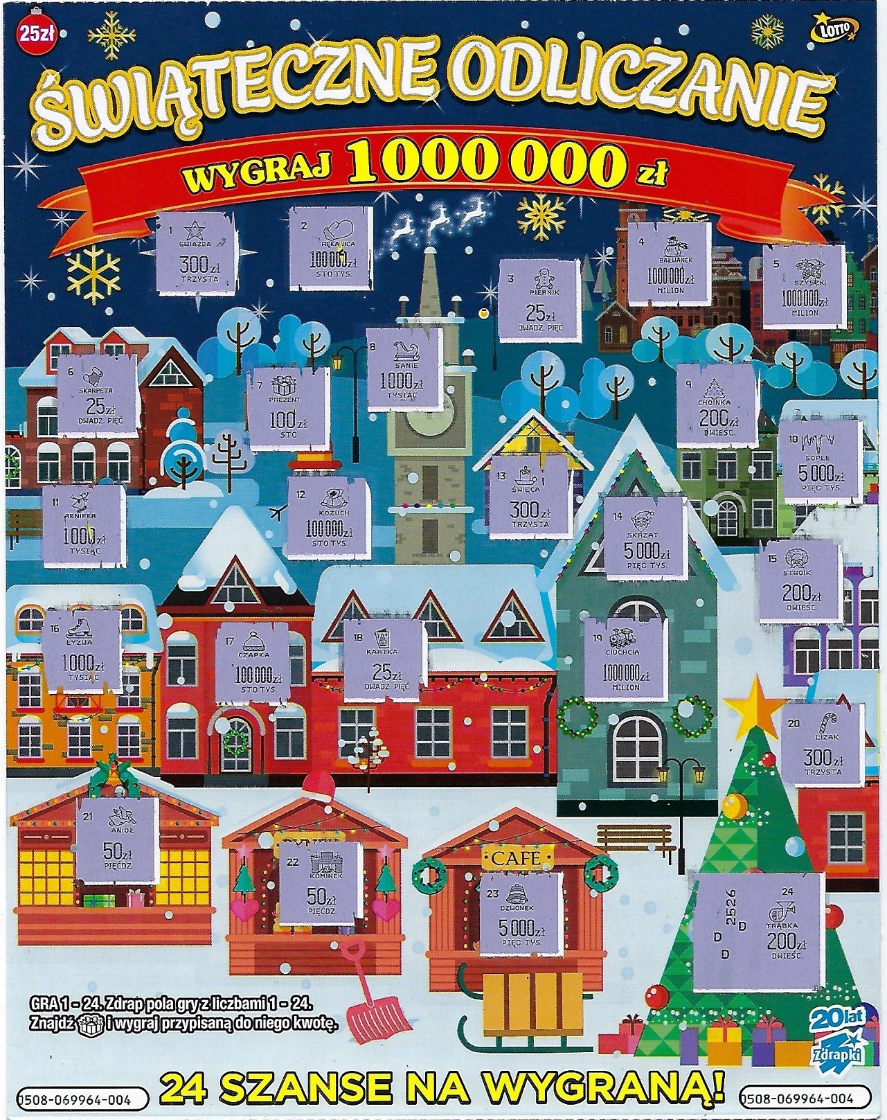 Dziś wymieniając wygraną z Wielkiej Zdrapki wzięłam dwie sztuki Świątecznego Odliczania.Numer 006 okazał się być pusty natomiast w 004 trafiło się