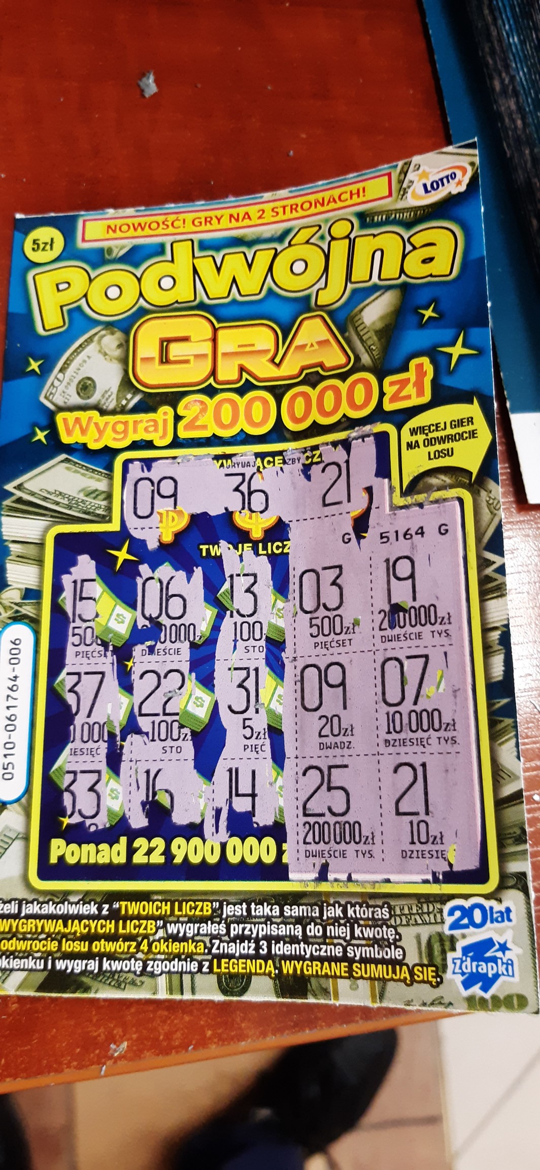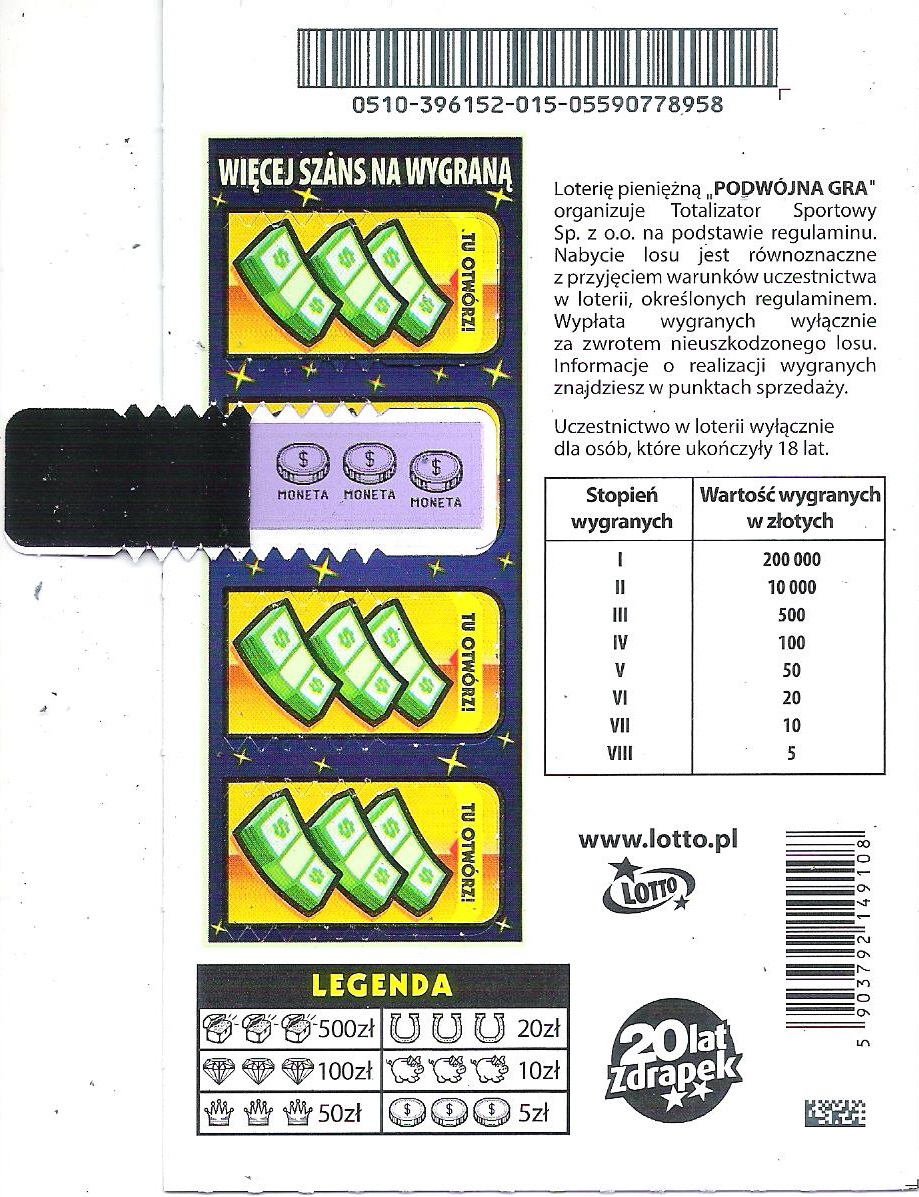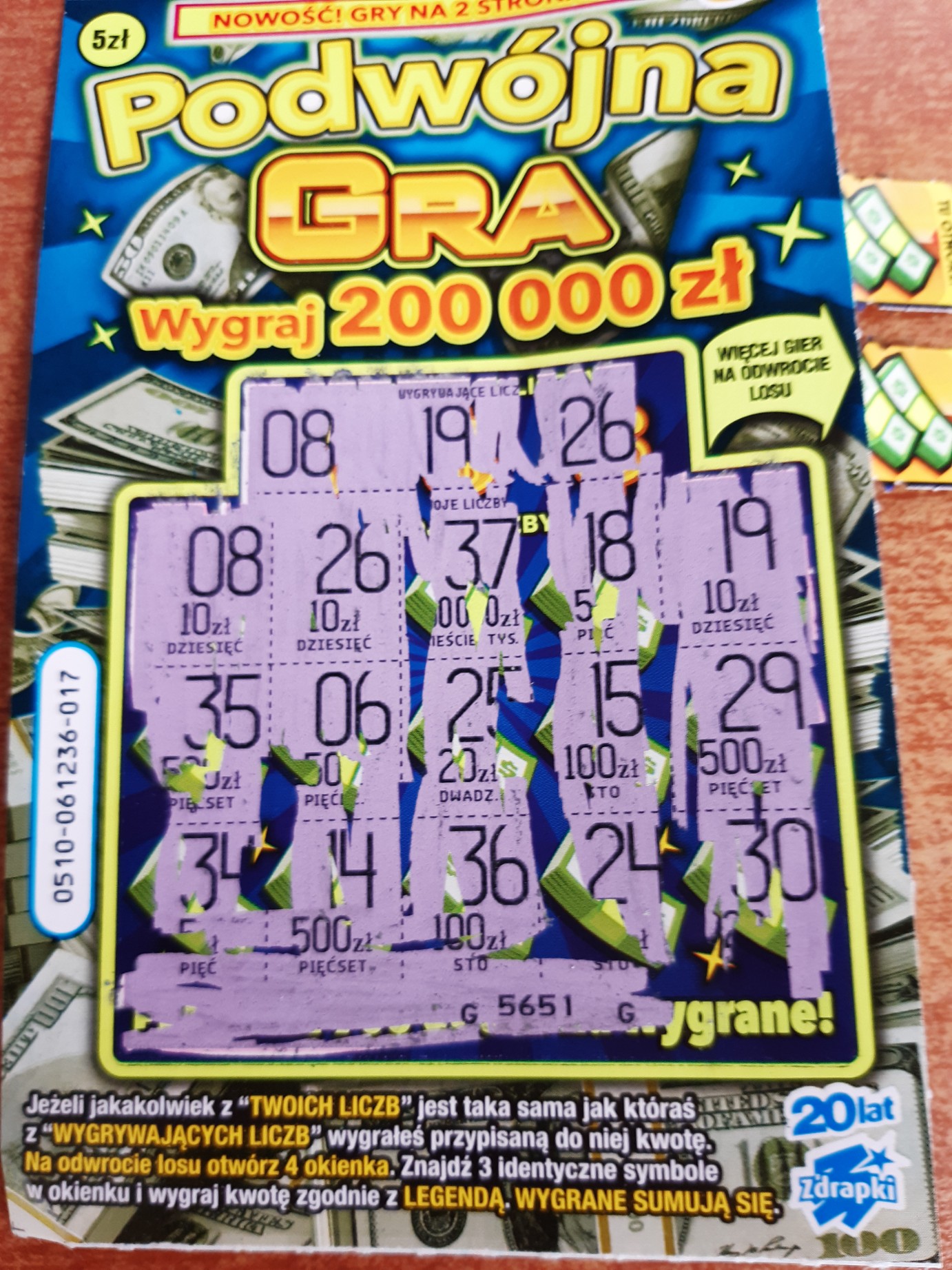 Zdrapka nr. 016 na odwrocie miałem 3 monety wygrana 5zł