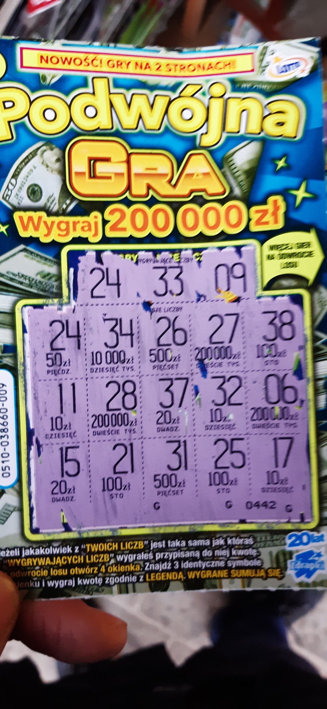 Gratkitereska1975 pisze: ↑23 sty 2020, 17:44Dziś rano kupiłam dwie, nr 002 pusty oraz nr 004, w którym trafiłam 50 zł![]()