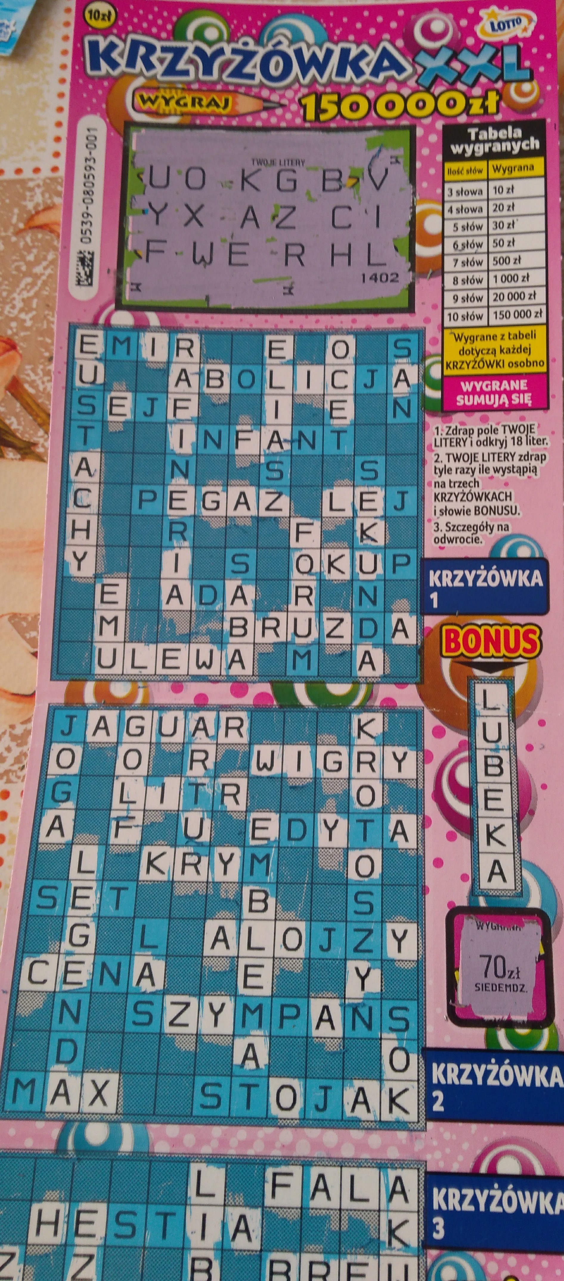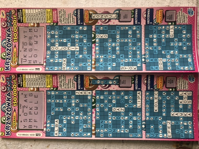 Pierwszy raz w zyciu drapałem całą paczkę i skusiłem się na moją ulubioną krzyżówkę za 10 zł. Wygrane w paczce prezentowały się następująco: