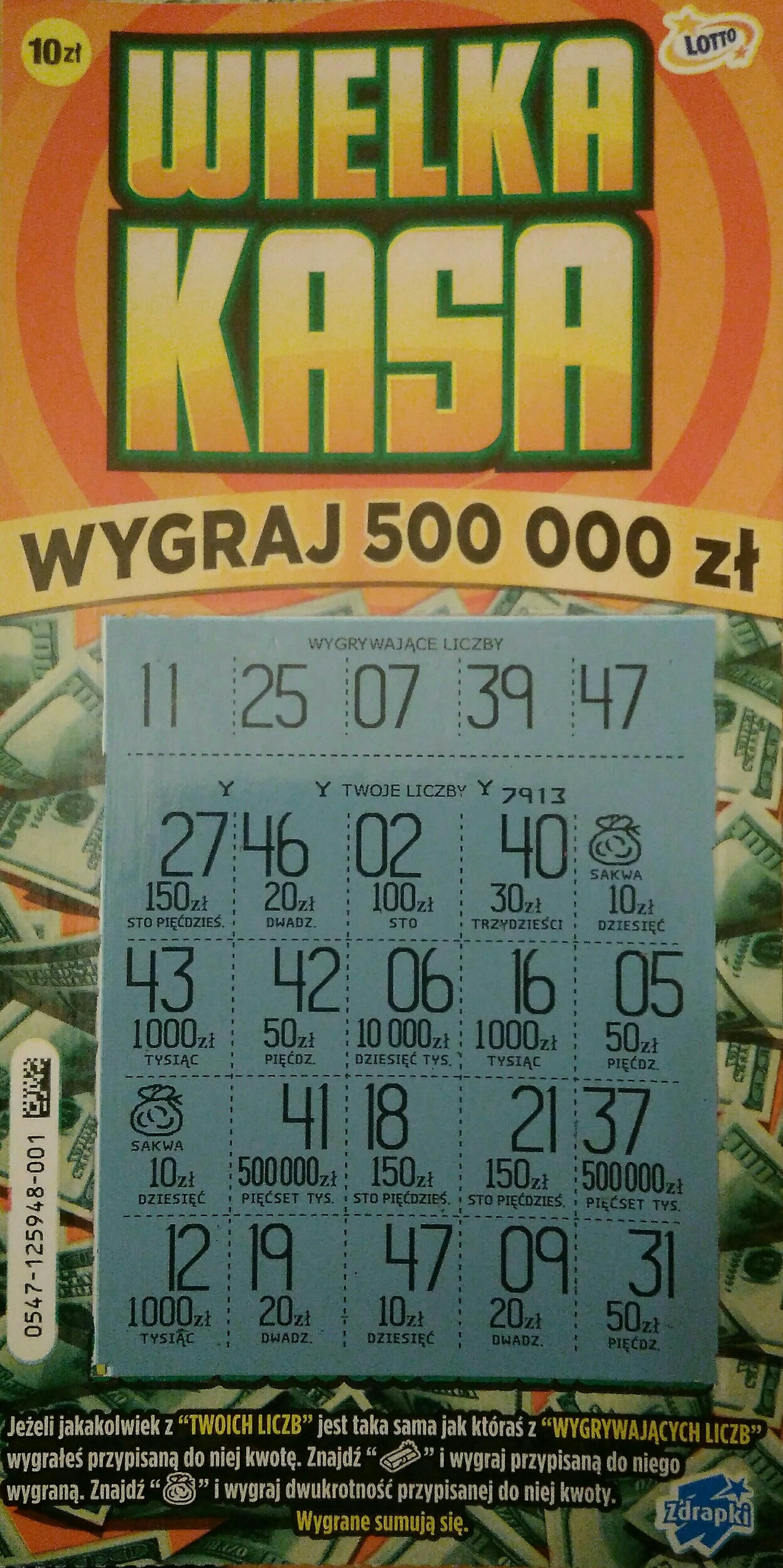 Wiem że już dawno tej zdrapki nie ma, ale jestem nowy na forum i chciałem sie pochwalić moim rekordem w lotto.