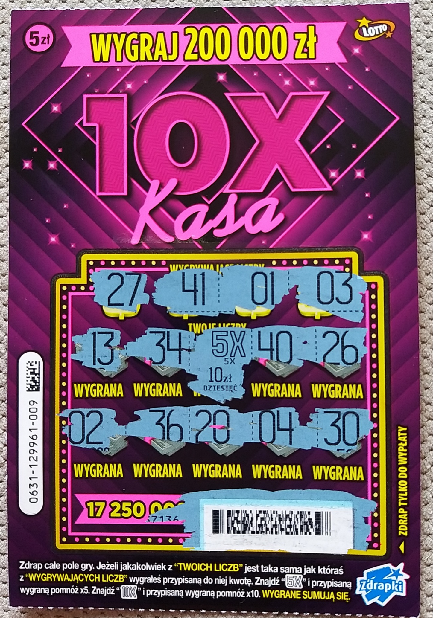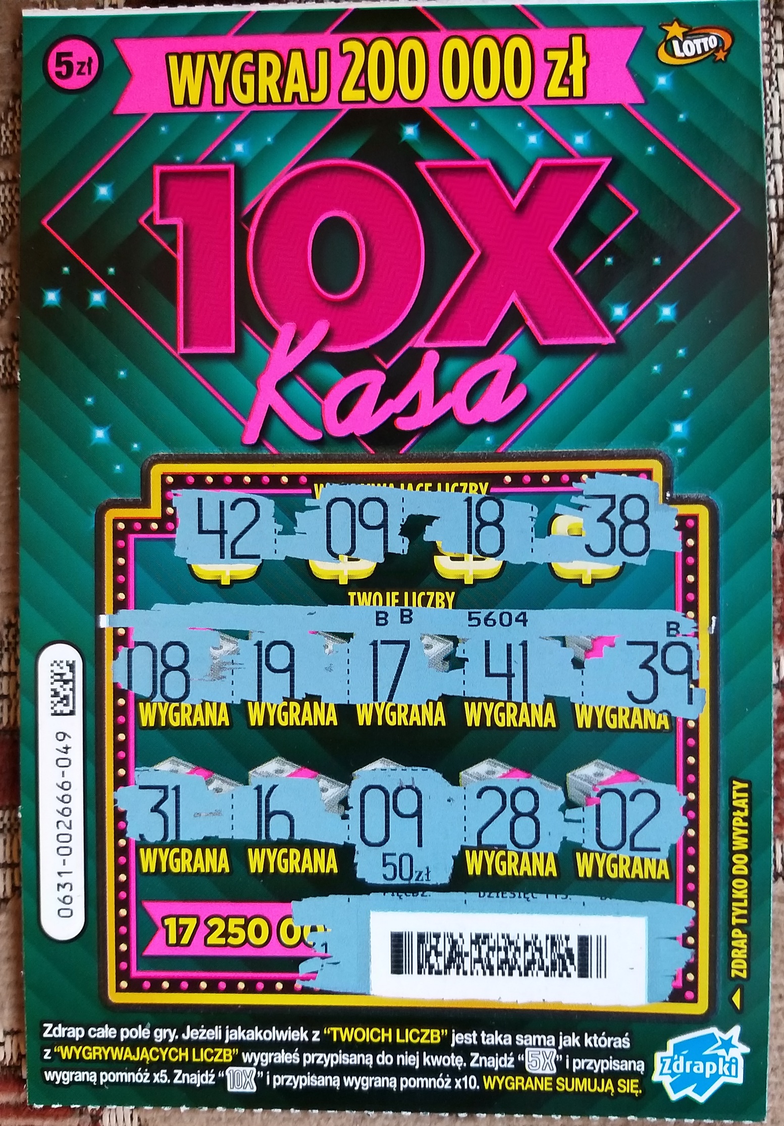 I znowu 50 zeta, choć lotto przegina z tym składaniem paczek i wygranymi, kupiłem ostatnie 9 sztuk, numery od 042 do 050 i tak :