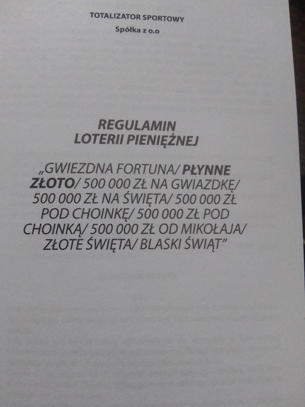 O kalendarzu świątecznym to chyba można już pomarzyć- skan z regulaminu zdrapki płynne złoto