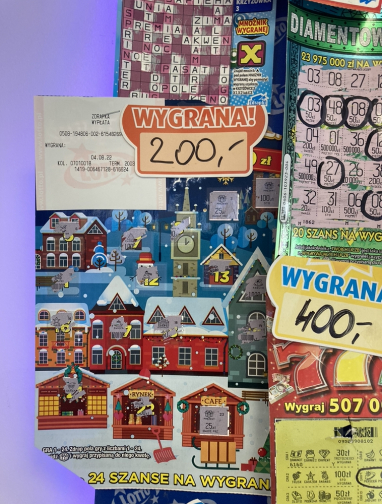 Ja wydrapałam już trochę tych paczek bardziej licząc na jakiś zwrot. Wydrapana 100 z paczki nie robiła mnie wcale. Ale raz kupiłam 1 zdrapkę i ta zdrapka dała mi ogrom radości. Dodatkowo trafiłam na ścianę chwały w mojej ulubionej kolekturze