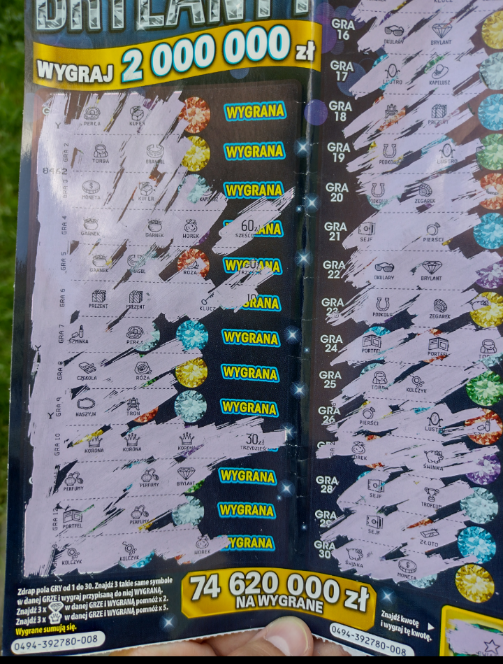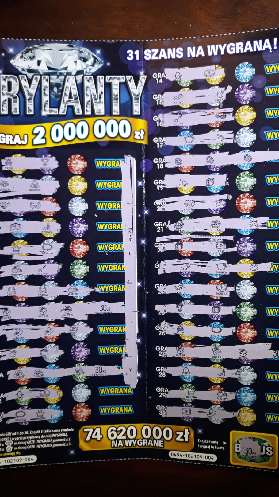 Wzięte 4 sztuki z tej samej paczki i 1x 30 zł. Zostały jeszcze numery 5 i 8, wezmę jutro, wydrapałem prawie całą paczkę, ale numer 9 już ktoś kupił ale zaprzyjaźniona kolektorka mówiła że nie wypłacała więc w którymś z dwóch siedzi stówa albo 150,skoro 2x 30 wydrapałem