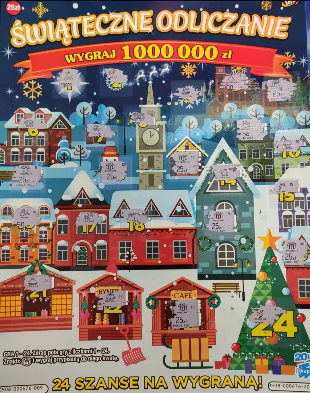 Ja to zaczynam trochę myśleć, ze główna jest w śmietniku. Ostatnio przed wyrzuceniem przeglądałam wydrapane ŚO i często nie drapałam numeru 8. Jakoś mój mózg omijał to pole a zdrapkę odkładałam jako pustą. Mimo to drapie nadal bo tak się wkręciłam w te choinkę że głowa mała