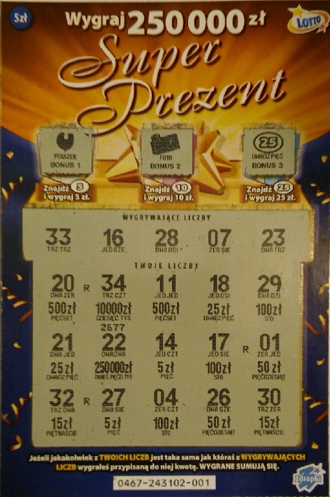 Nawet się nastawiłam na zakup dziś pakietu ale że w punkcie, który odwiedzam sprzedawali pojedynczo zdrapki wzięłam numer 001 oraz 010.