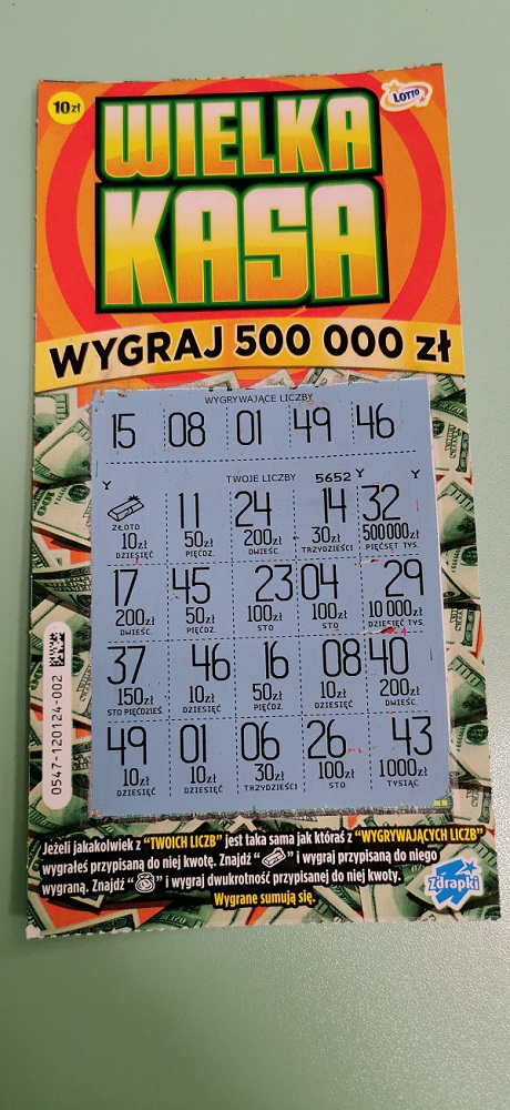 Dokupione 2 sztuki i niestety numery 5 i 11 - puste. Bilans: wydane 40zł, wygrana 50zł, bilans + 10zł. Jeszcze spróbuję z tą zdrapką.