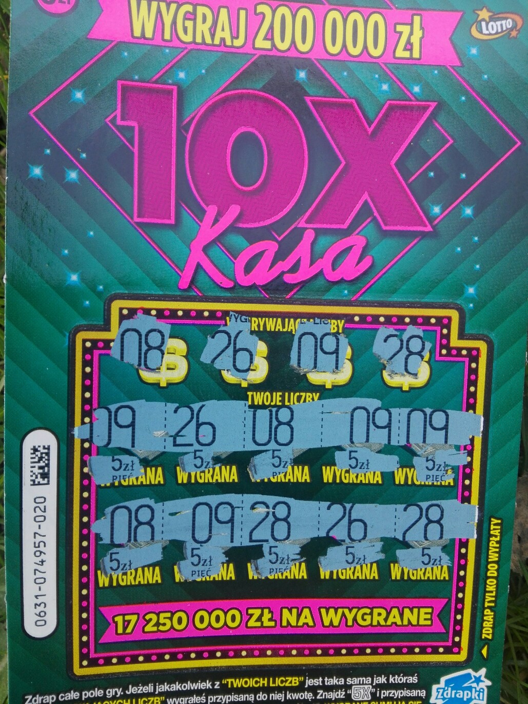 Fajnie jest trafić mnoznik, w pierwszej edycji w pierwszym drapanym łosie miałem znaczek x5 i wyszło 25zł. Nigdy potem już mnożnika nie zobaczyłem ani też w kasie po 2zl i 10zł. Może teraz się uda