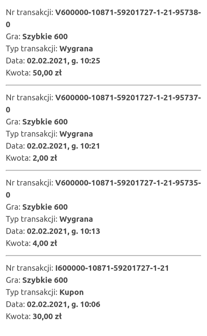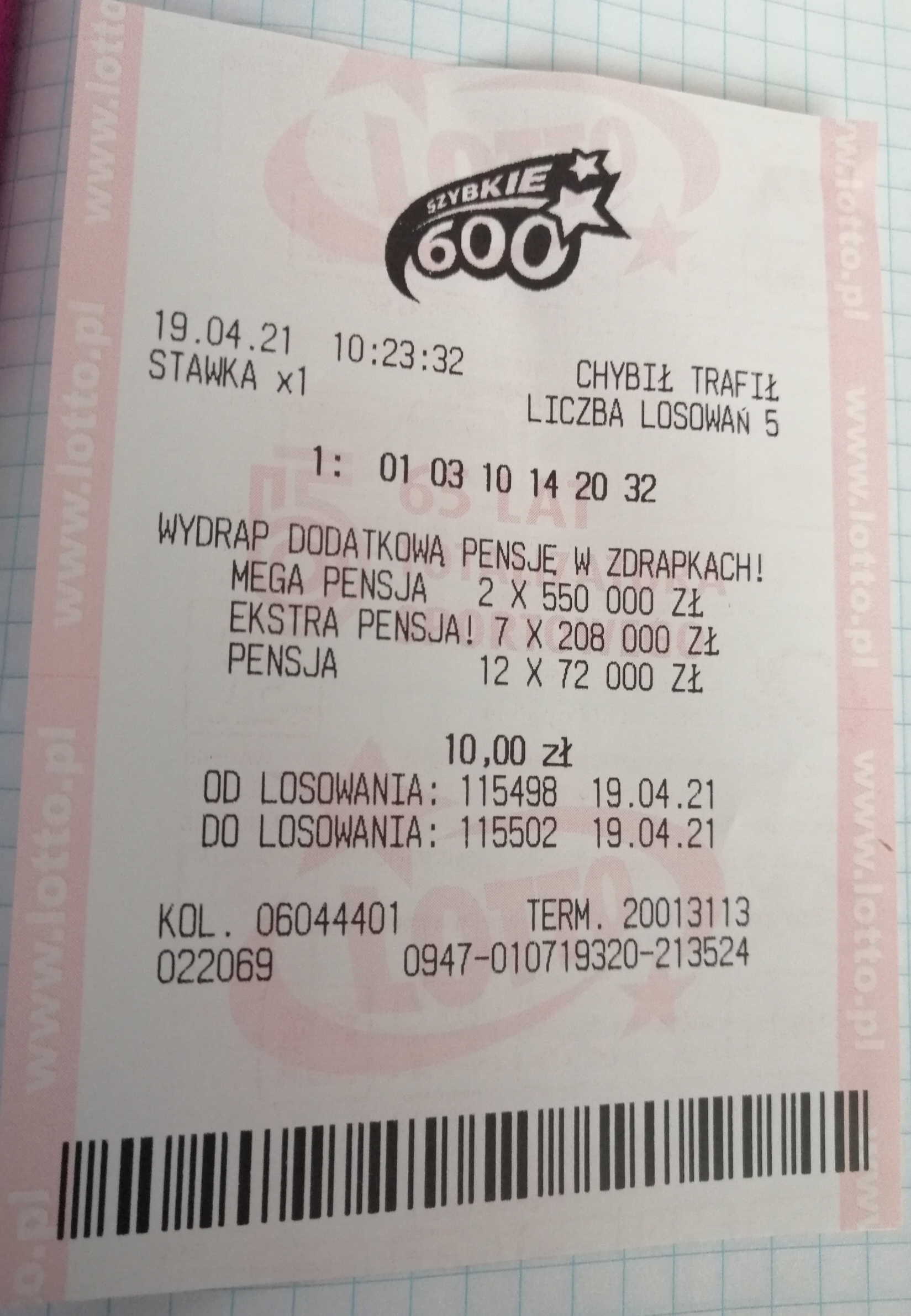 Na pewno plusem było to, że aplikacja nie działała za bardzo, a liczby puszczone wcześniej na kilka losowań, bardzo mało losów puszczonych przez graczy. No, ale jak to mówią, tu trzeba mieć szczęście i tym razem dopisało
