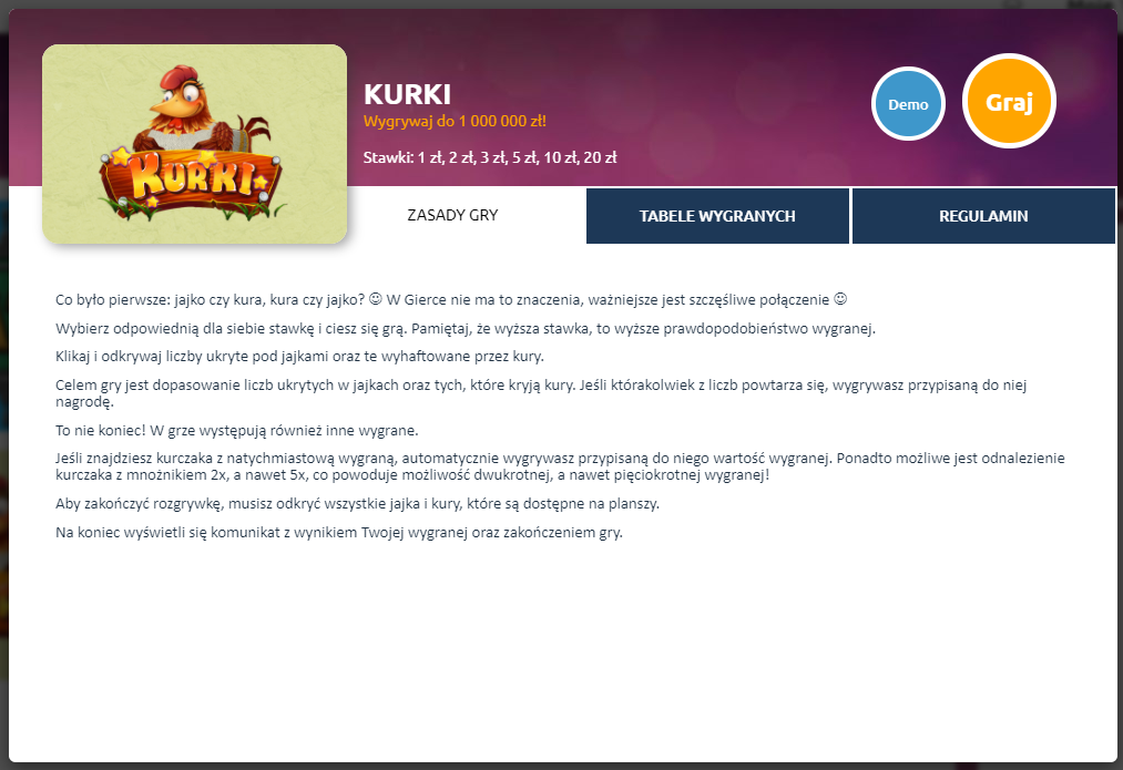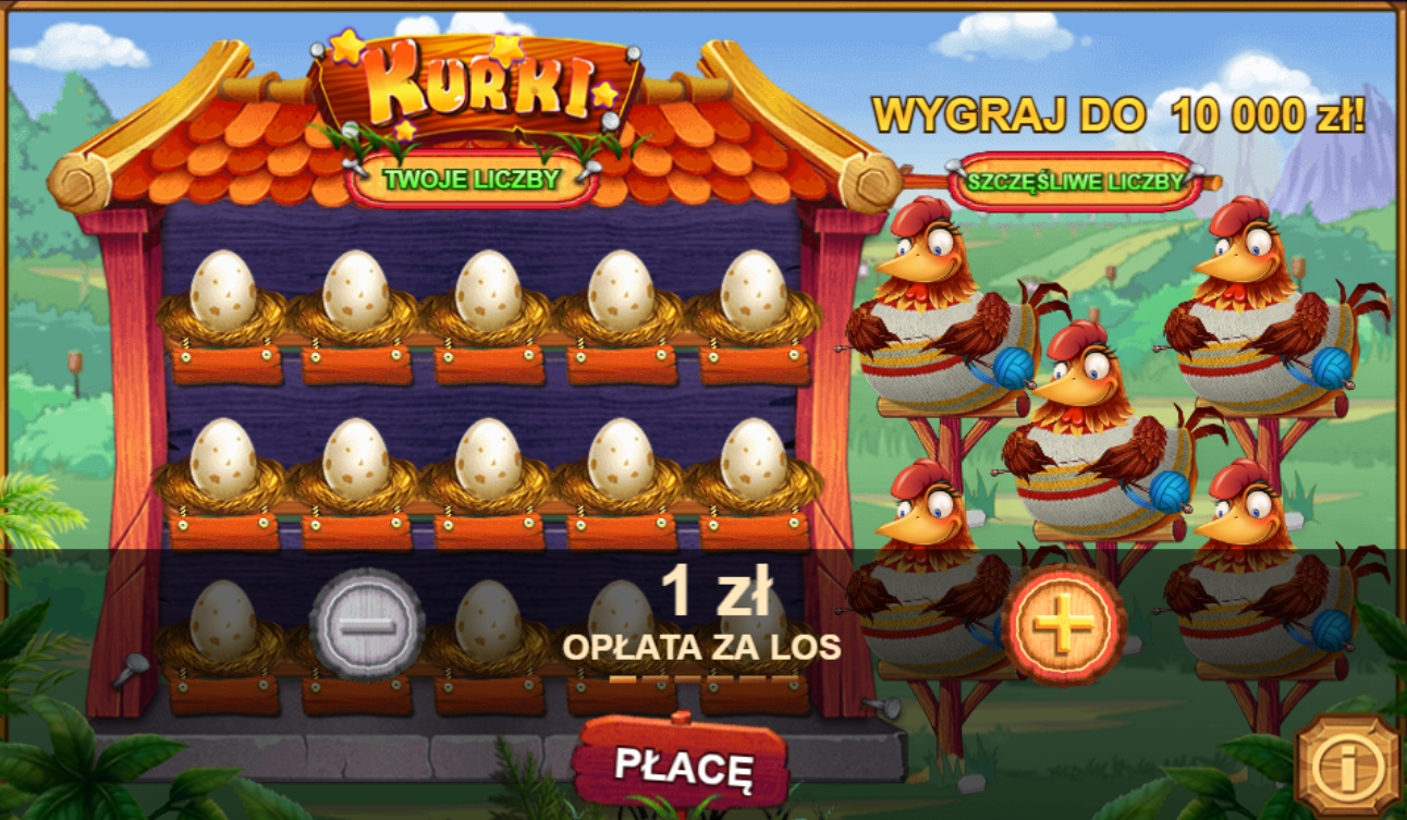 4. Kurki - masz jajka i pod jajkami są nasze liczby a obok są kury co trzymają wygrywające liczby. Jak coś trafisz ze swoich w tym co jest w kurach to wygrywasz.