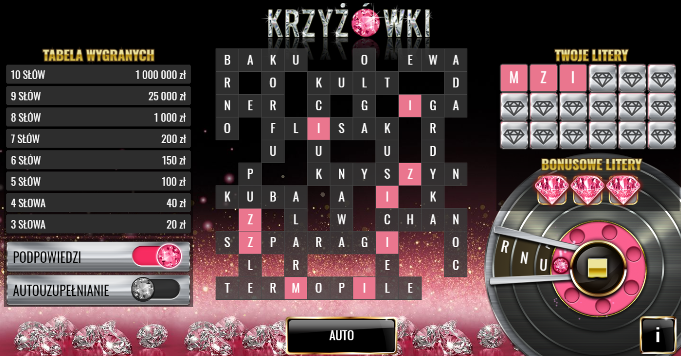 5. Krzyżówki - losujesz literki i zaznaczasz, jak ułożysz minimum 3 słowa to wygrywasz. Jest też bonus z extra literką za wylosowanie diamentu.