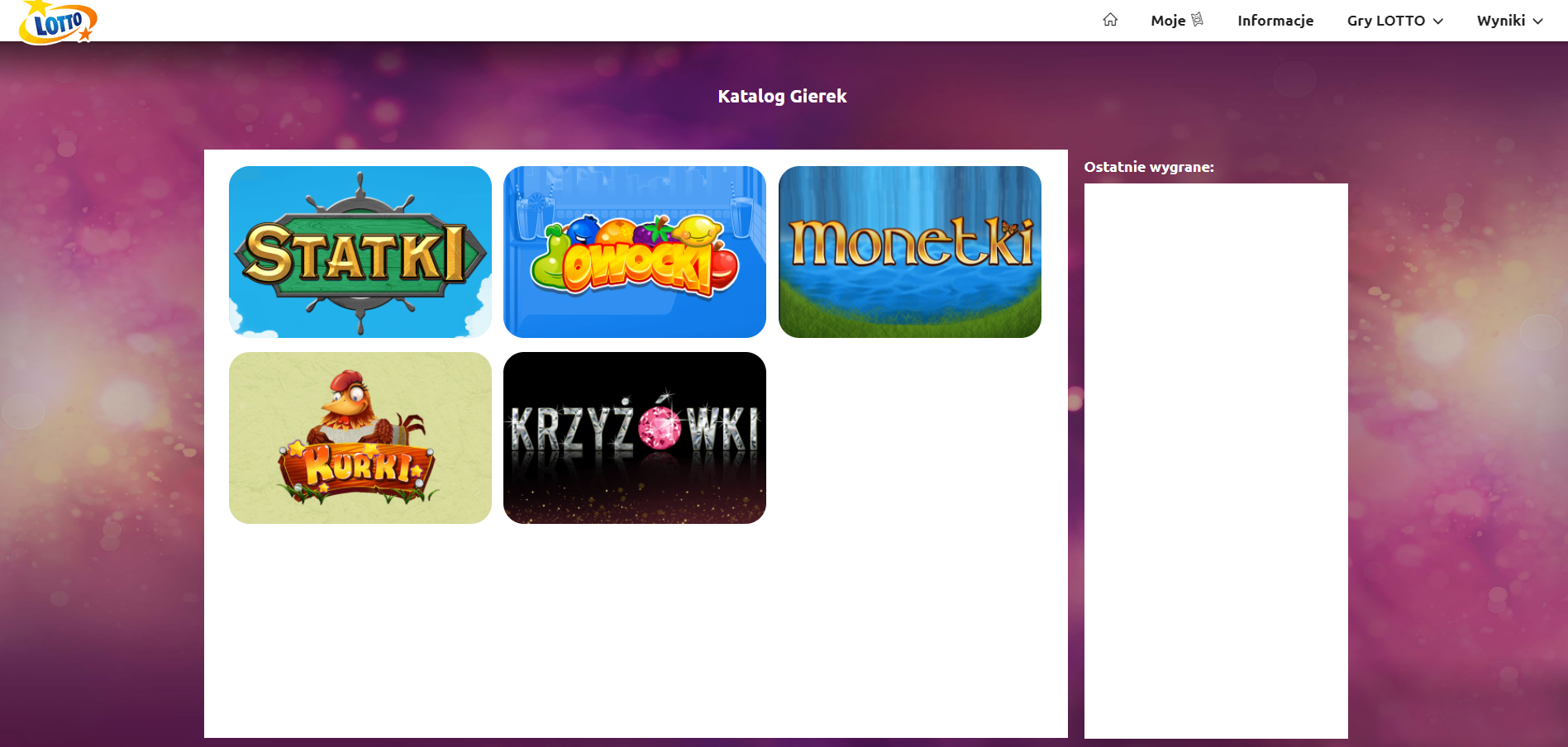 Pojawiała się zakładka Gierki w menu gdzie się sprawdza zakłady kupione.