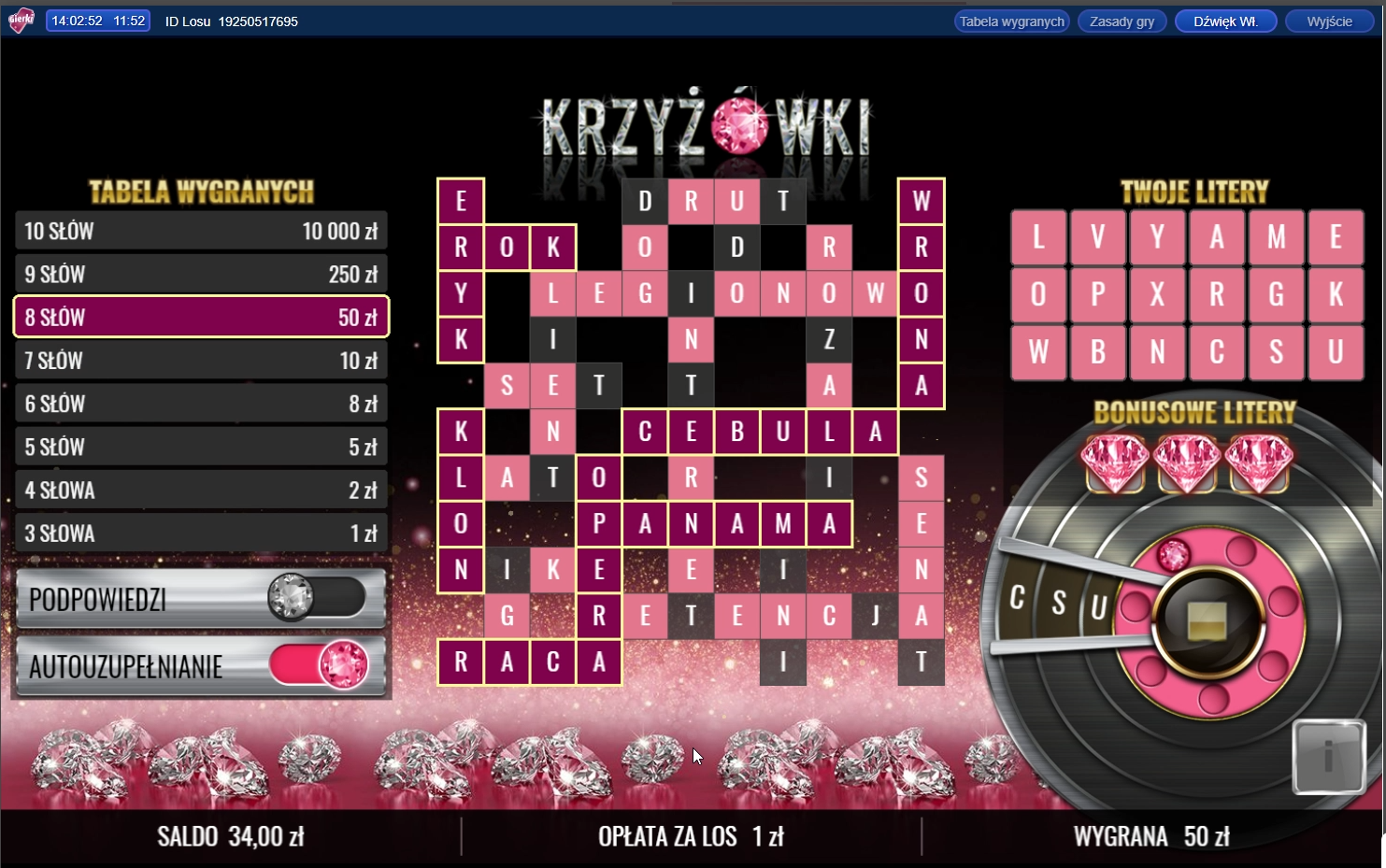 Dziś trochę pograłem w "Krzyżówki" za złotówkę, wpadło kilka drobniaków po 1,2 zł, raz 5 zł, dwa razy 8 zł i mój rekord w gierkach - 50 zł