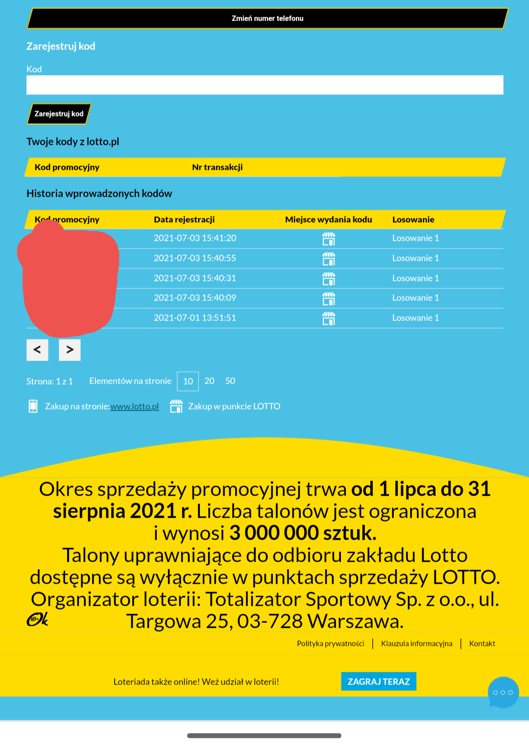 I nic nie dostałem żadnych kodów za grę w gierki. Poczekam ,ale ktokolwiek dostał kody na loteriadę za gierki?
