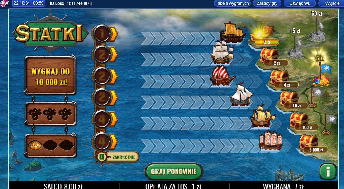 Chorągiewki w Statkach to jak dla mnie najbardziej nieosiągalna rzecz w gierkach. Ostatnio sporo pograłem w "Piłeczki" i bonus również ani razu nie wpadł a zawsze jestem go ciekawy - to bardzo ciekawa ale jedna z oporniejszych gierek nawet jeśli chodzi o zwroty.