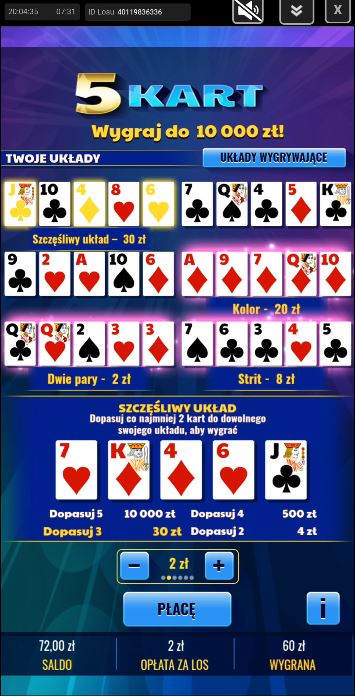Nowa gierka, nawet jej nazwy nie chcę pisać. Głowna przy grze 1 zł 900zł, za 10 zł można wygrać 9000zł. Wygrana za 50zł daje możliwość ułożenia sobie życia za 45000zł.