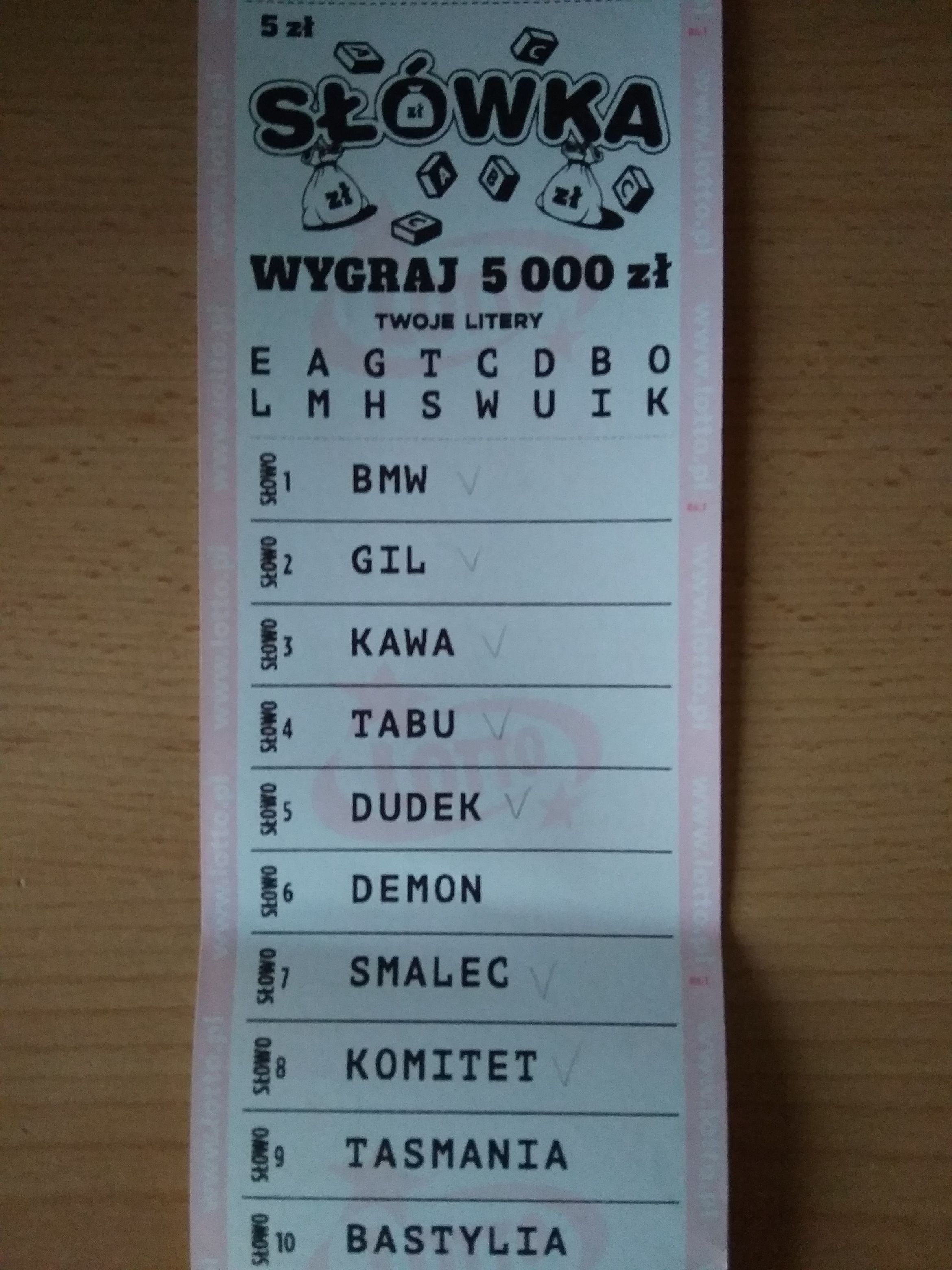 Pierw wygrana 20zł, poźniej za nią kupiłem parę ekspres losów i 50zł