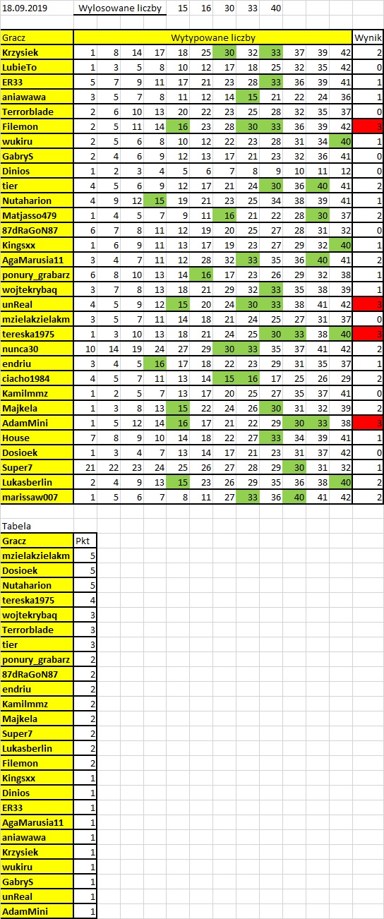 Od jutra wyniki oraz tabela będą w dwóch osobnych wpisach.