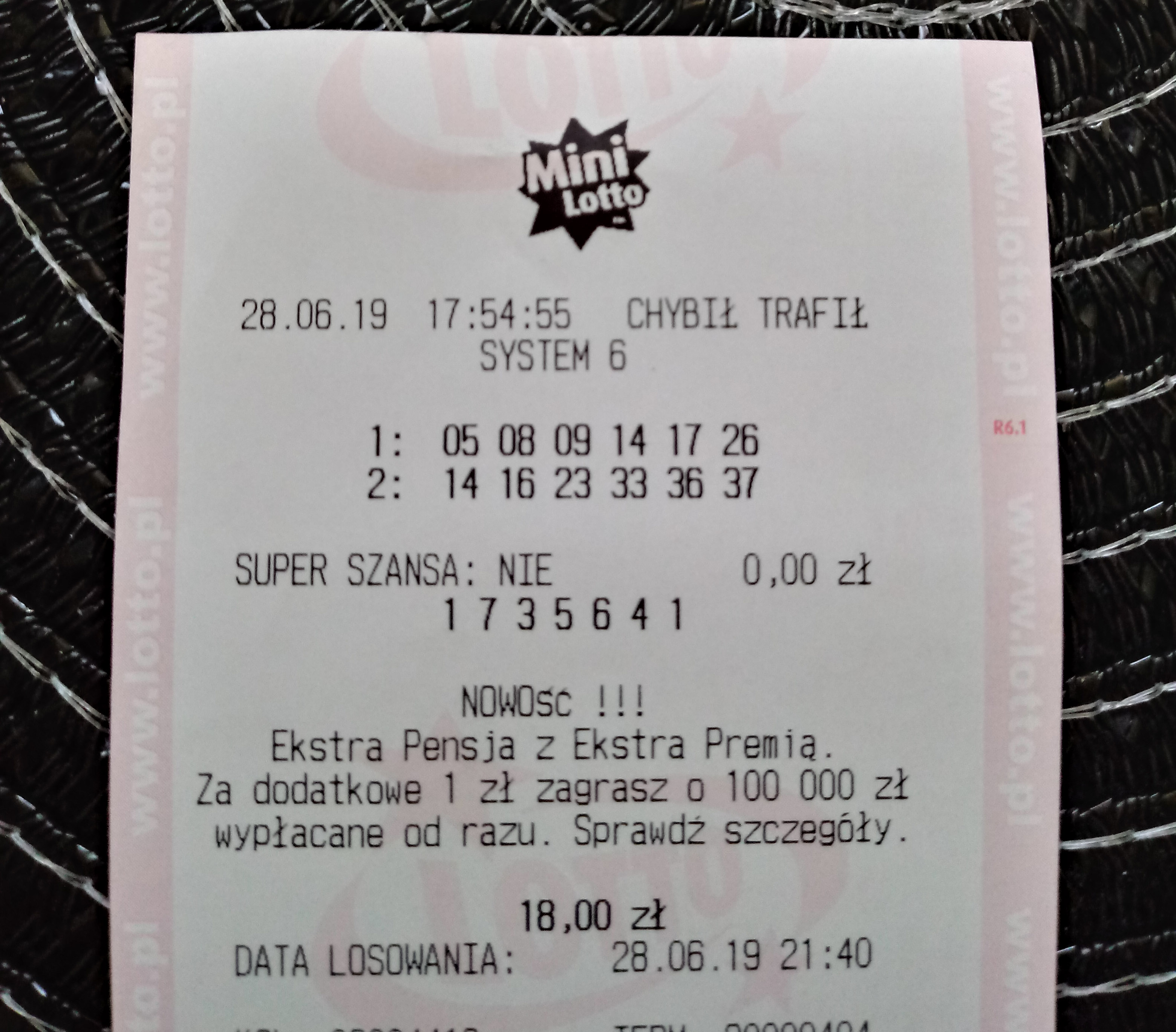 Nie czuje... Duza ilosc czworek w losowaniu miala swoje odzwierciedlenie w wysokosci wygranej...newużytkownik pisze: ↑22 cze 2019, 12:01Gratulacje Dinios ! Nie czujesz się jednak oszukany, że zapłaciłeś więcej za kupon a wygrana za 4 jest poniżej normy za czasów sprzed podwyżki ?