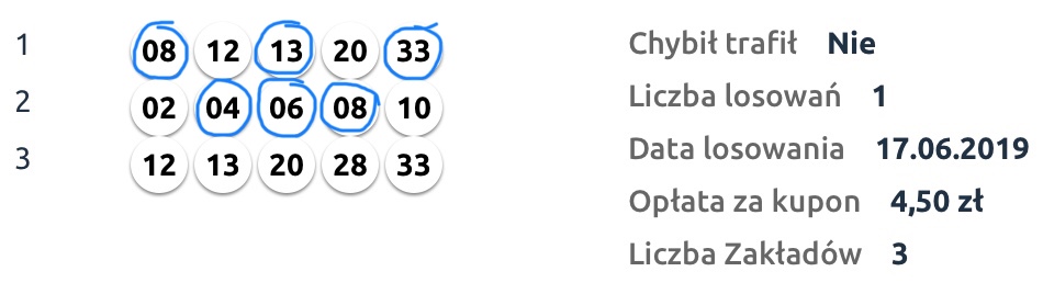 Siedzę pół dnia nad analizami liczb do systemu i... nic a tu taki sobie ad hoc zrobiony kuponik i... wyskakują
